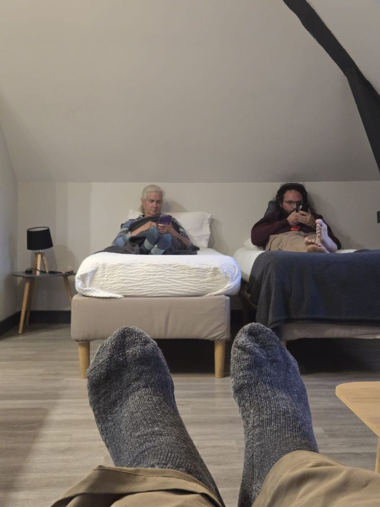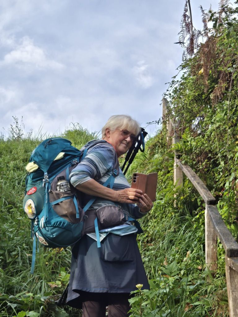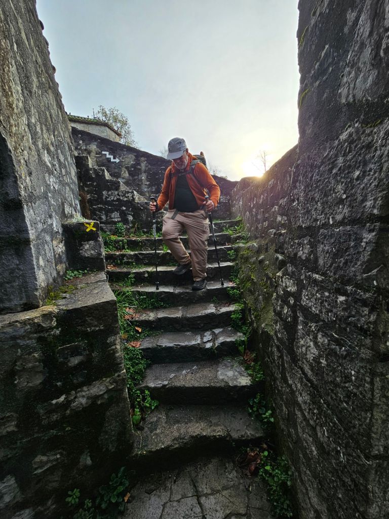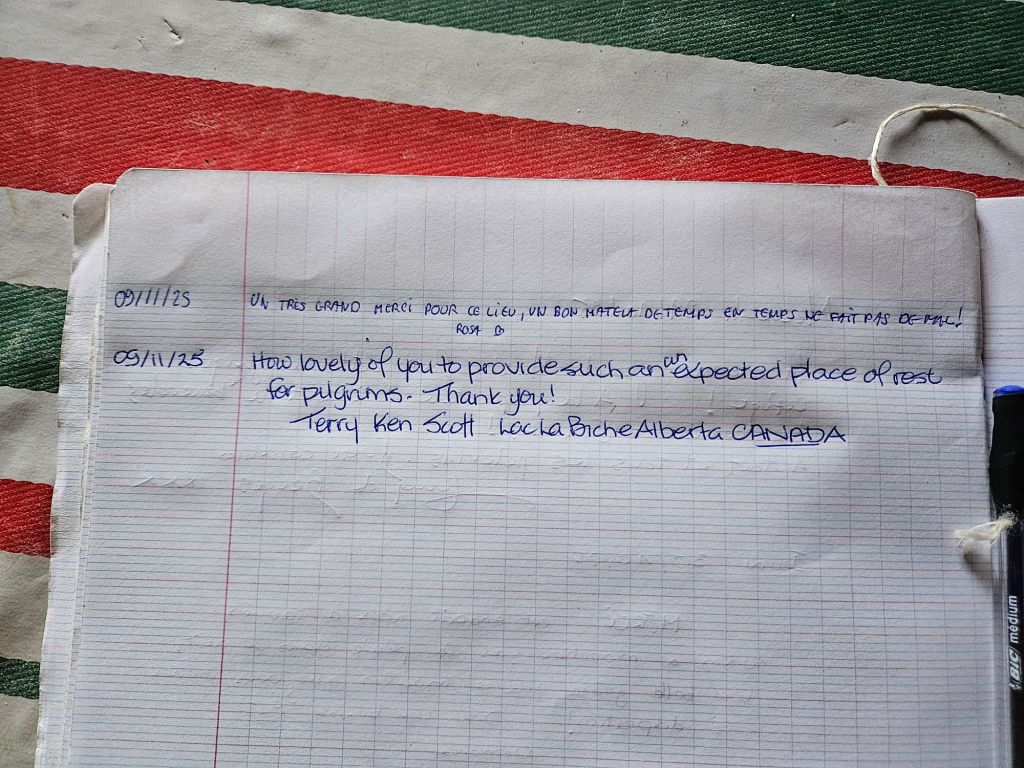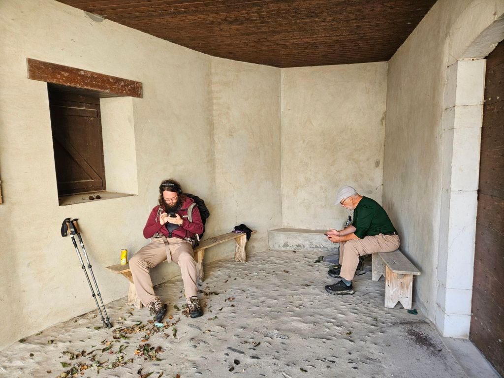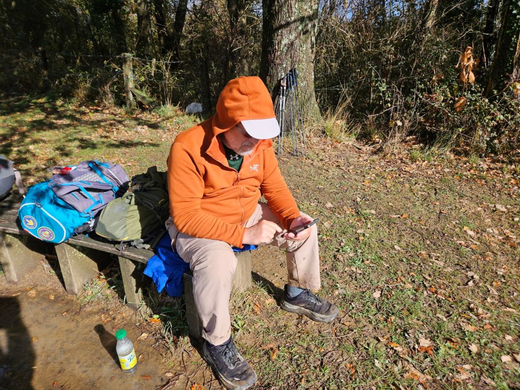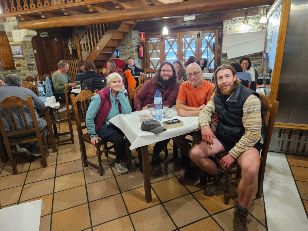 There was a young pilgrim sitting by himself so Ken invited him over. It really was good to connect with another pilgrim. Nick was from Australia and had been walking since Burgos. We commiseratedabout judgmental pilgrims, noisy albergues, and the difficulty of walking in the cold rain and wind. The few days walk before O Cebreiro are difficult in nice weather but can be a drudgecand tricky when it’s wet and the wind is howling. We offered our Buen Camino and wish him well on his way.
