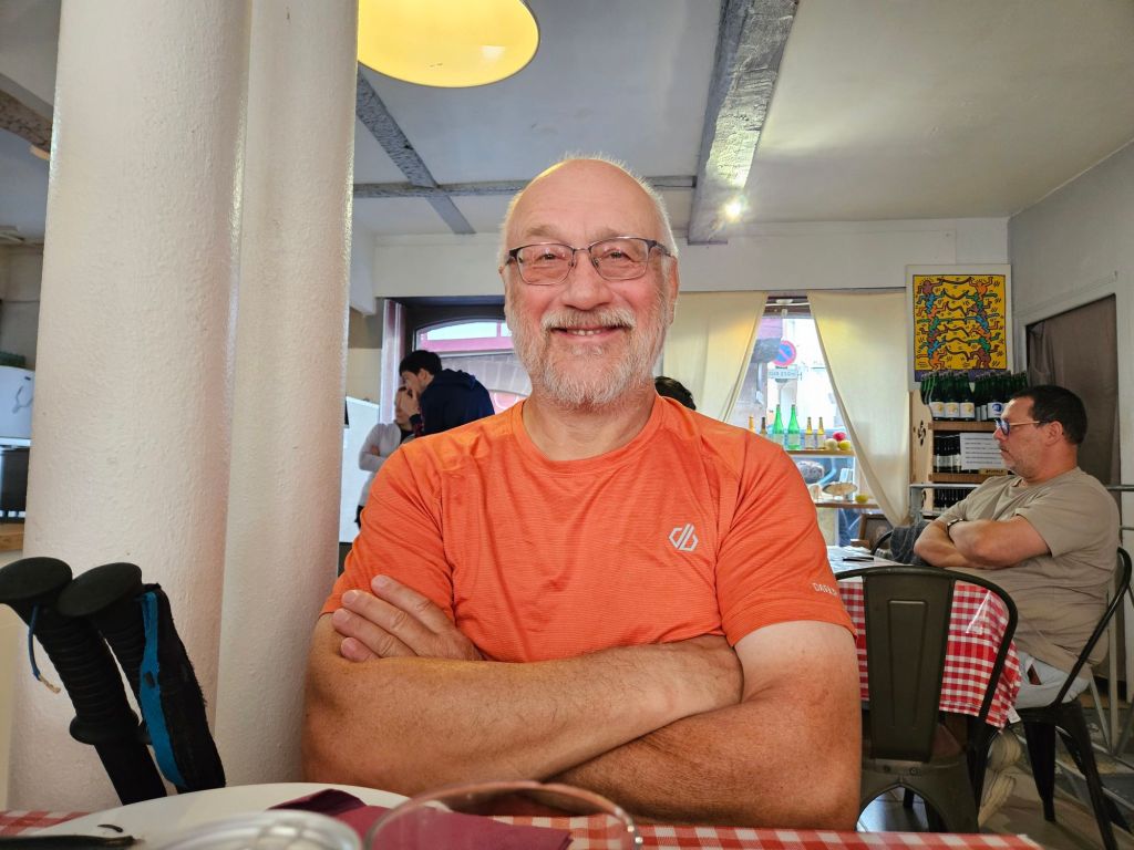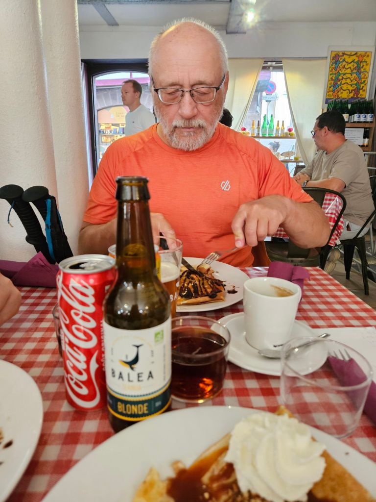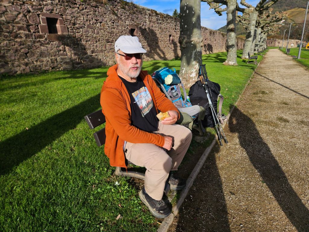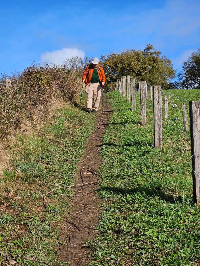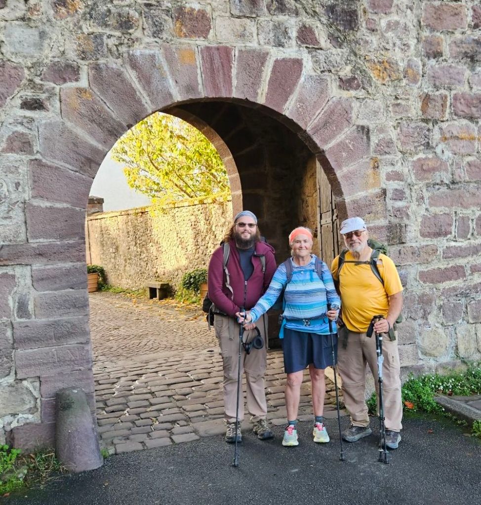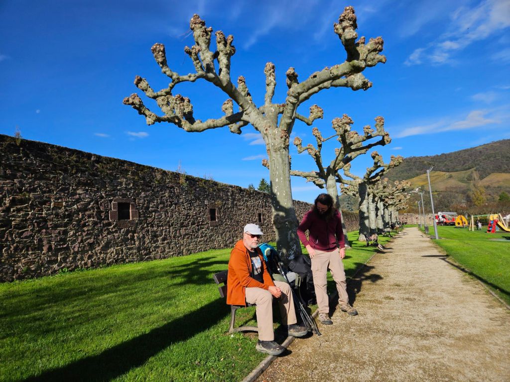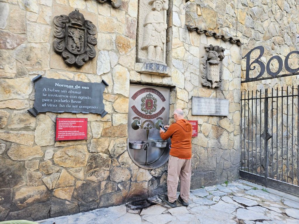 Another iconic pilgrim stop on the Camino. The Irache wine fountain. This bodega has a fountain where you can fill your water bottle OR dispense yourself a glass of wine. Traditionally a pilgrim was supposed to just take a sip using the Camino shell they carry on their packs. Most pilgrims only take a bit to save some for the next person but others will fill their water bottles. Ken only took water as he felt he had not “earned” the wine by walking this particular Camino. I have to respect that.