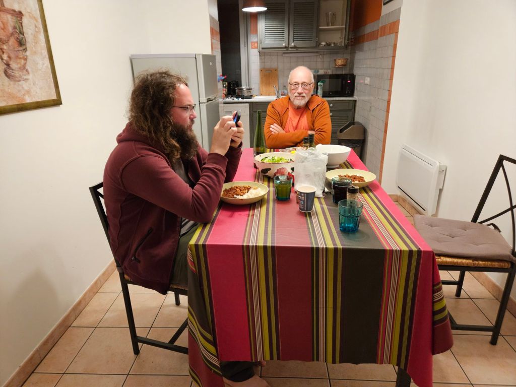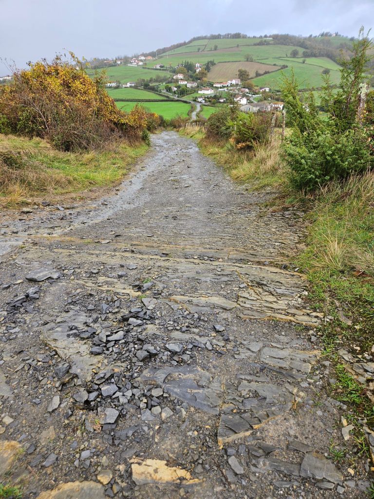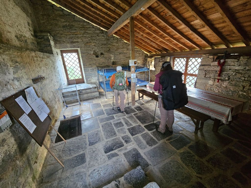 By the time we got into O Cebreiro ir was raining hard and just about dark. This town is yet another iconic stop on the Camino as it sits on top of a ridge/hill and is the second biggest climb after the Pyrenees. It is tiny, perhaps only 10 or 12 buildings, including the small church, and is very much alive because of pilgrims. It does get the odd tour bus as it is quite charming with its slate buildings and thatched roofs. There is a restaurant, 2 gift shops, a tavern, a municipal albergue with 104 beds (dormitory style) and a few places for non pilgrims or pilgrims who dont like the dorm lifestyle (mostly because of the snoring). Scott the foodie was introduced to his first traditional Galician soup.