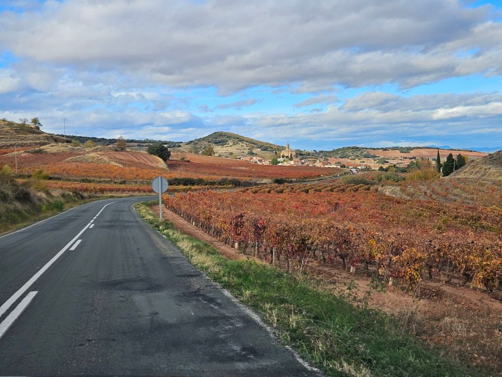It is amazing how much the landscape has changed since we crossed the Pyrenees. The French side was lush and green while the Spain side is significantly drier. We are in Rioja, the land of fine wines. Lots of vineyards in brilliant colours.