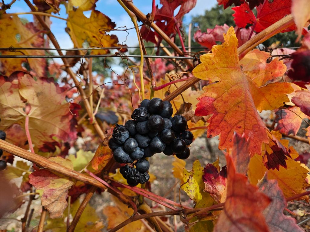 The colours are phenomenal. Most grapes have been harvested with only a few forgotten bunches remaining.