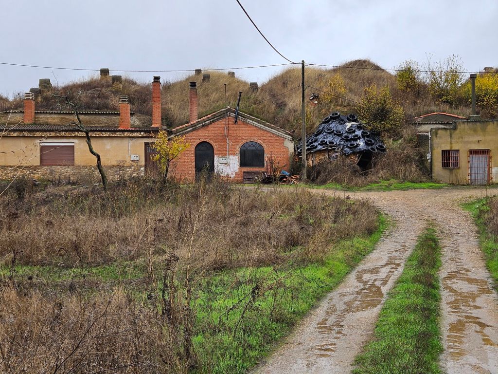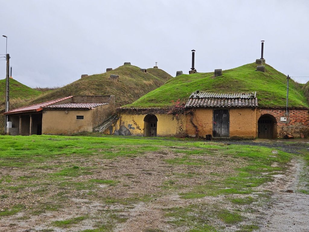 These are underground wine cellars – wine is stored underground as a means of maintaining even temperatures. We see them in grape growing regions of Spain. To be honest we only saw these because the navigator (that would be me) made a boo boo.