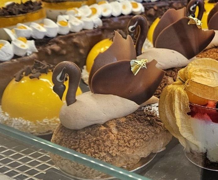 We have to stop for Ken’s coffee. Look at these beautiful swan pastries. How can anyone bear to actually eat them – they are art!