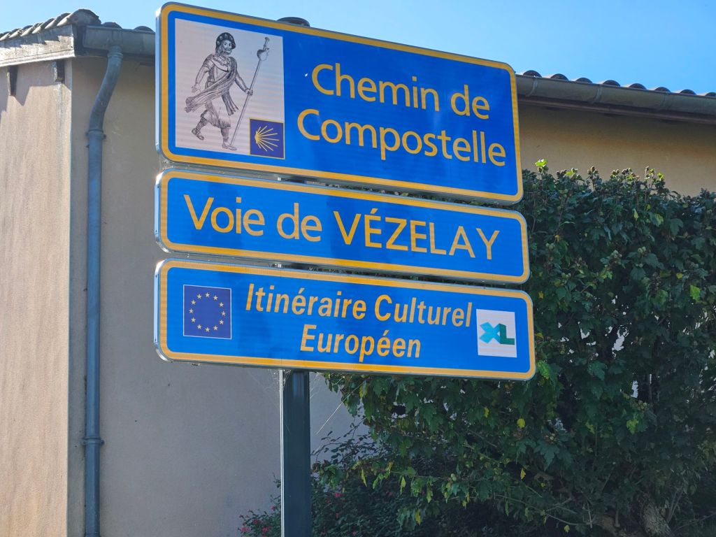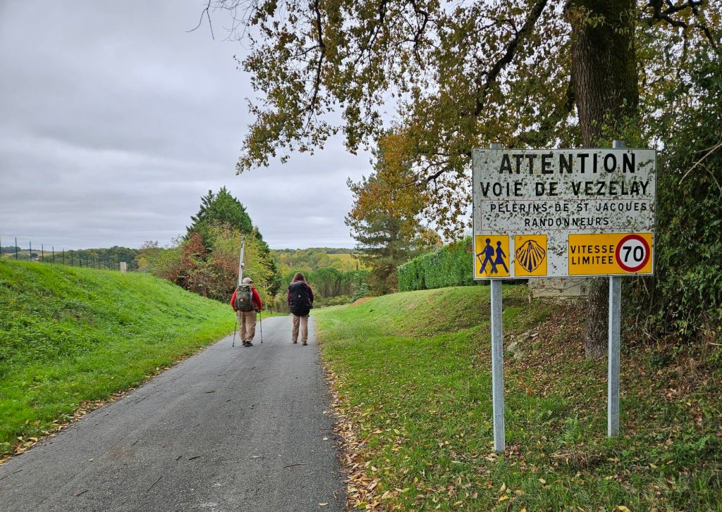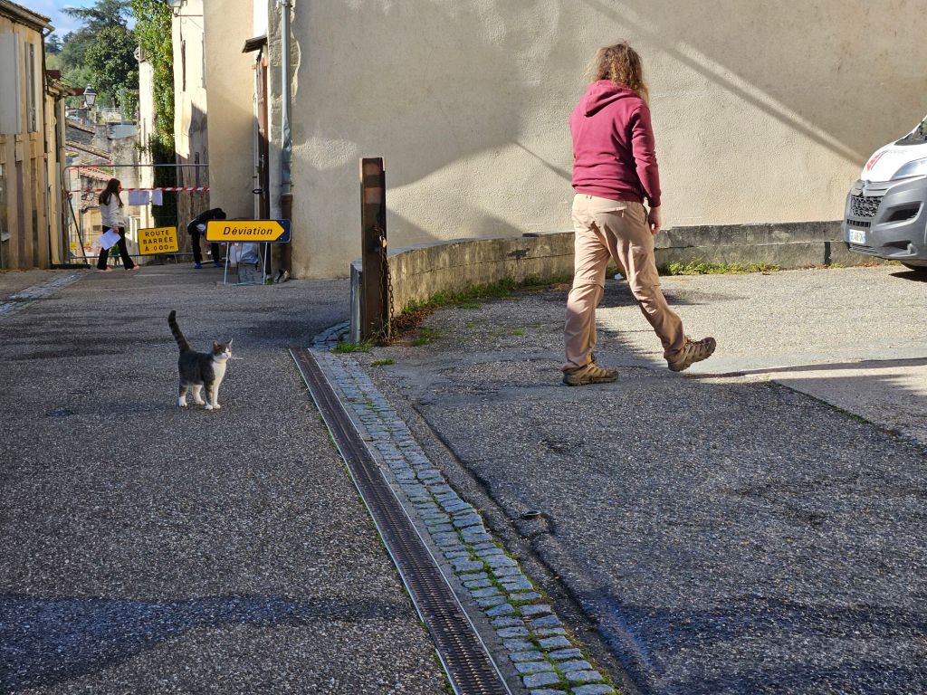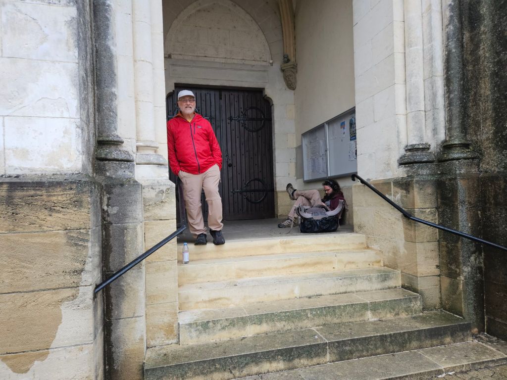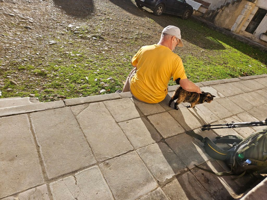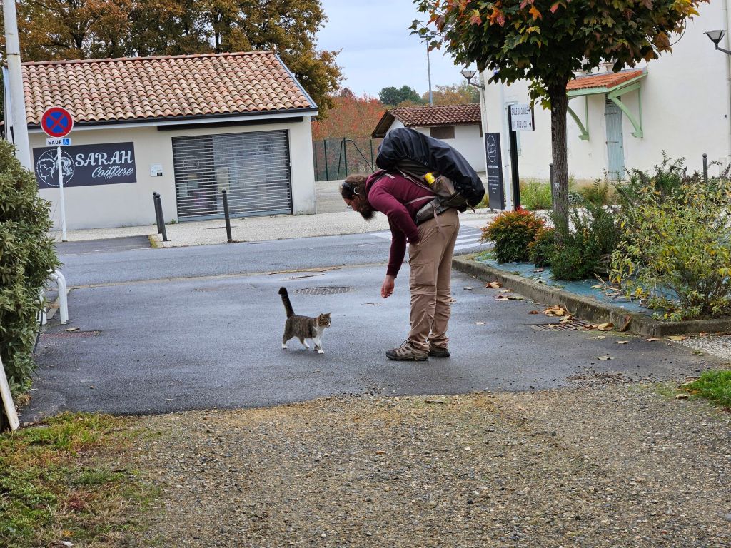 We went up the hill into town on the off chance the Mairie (town office) was open for a pilgrim stamp – it wasn’t but this guy made sure we had a howling welcome.