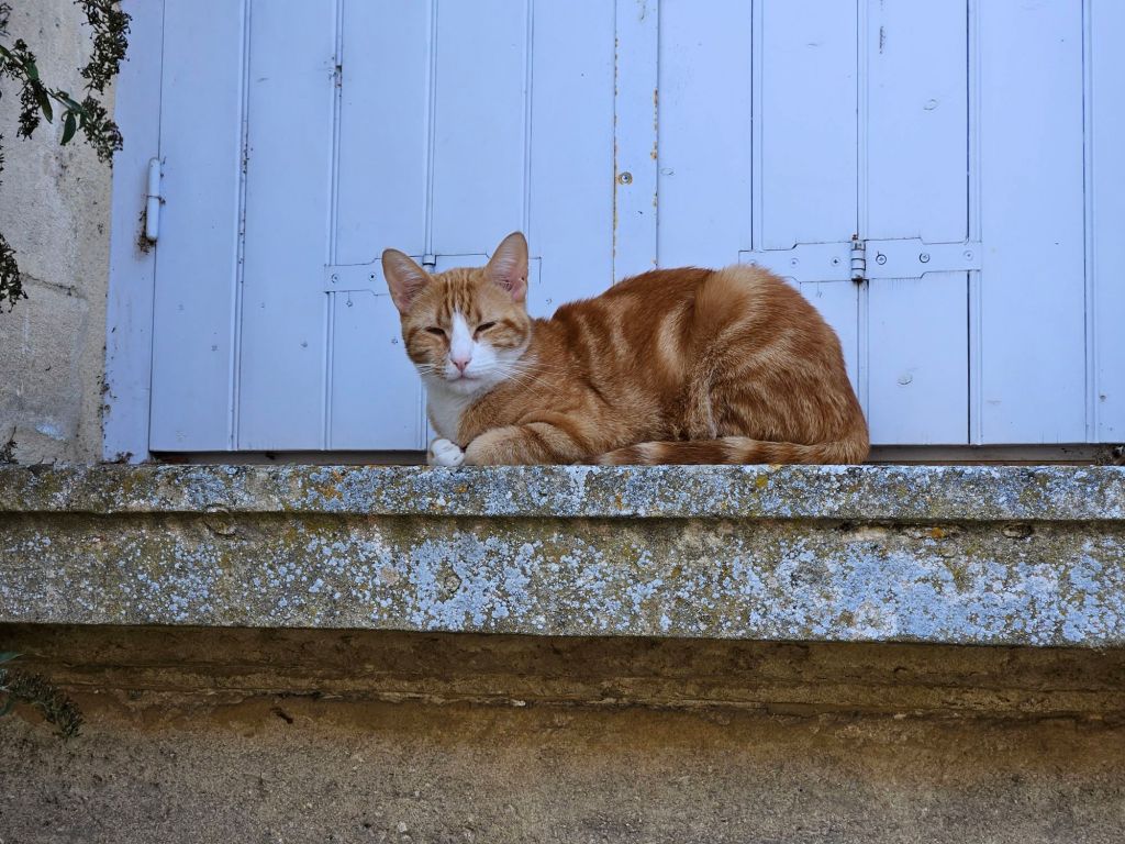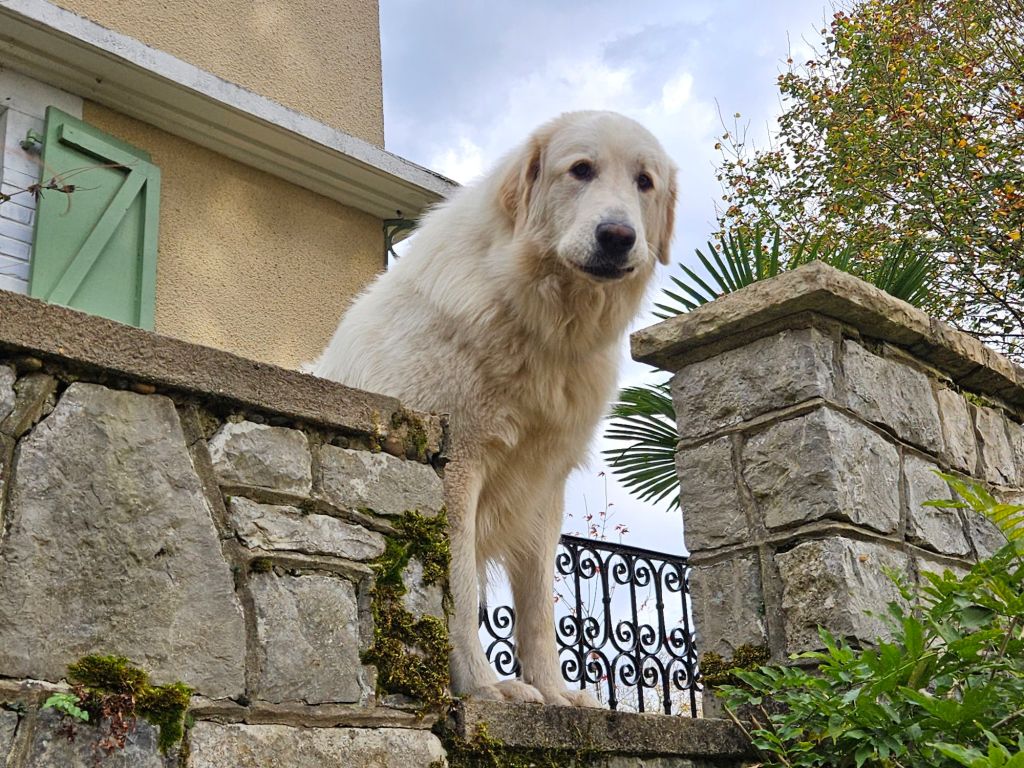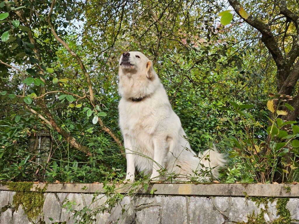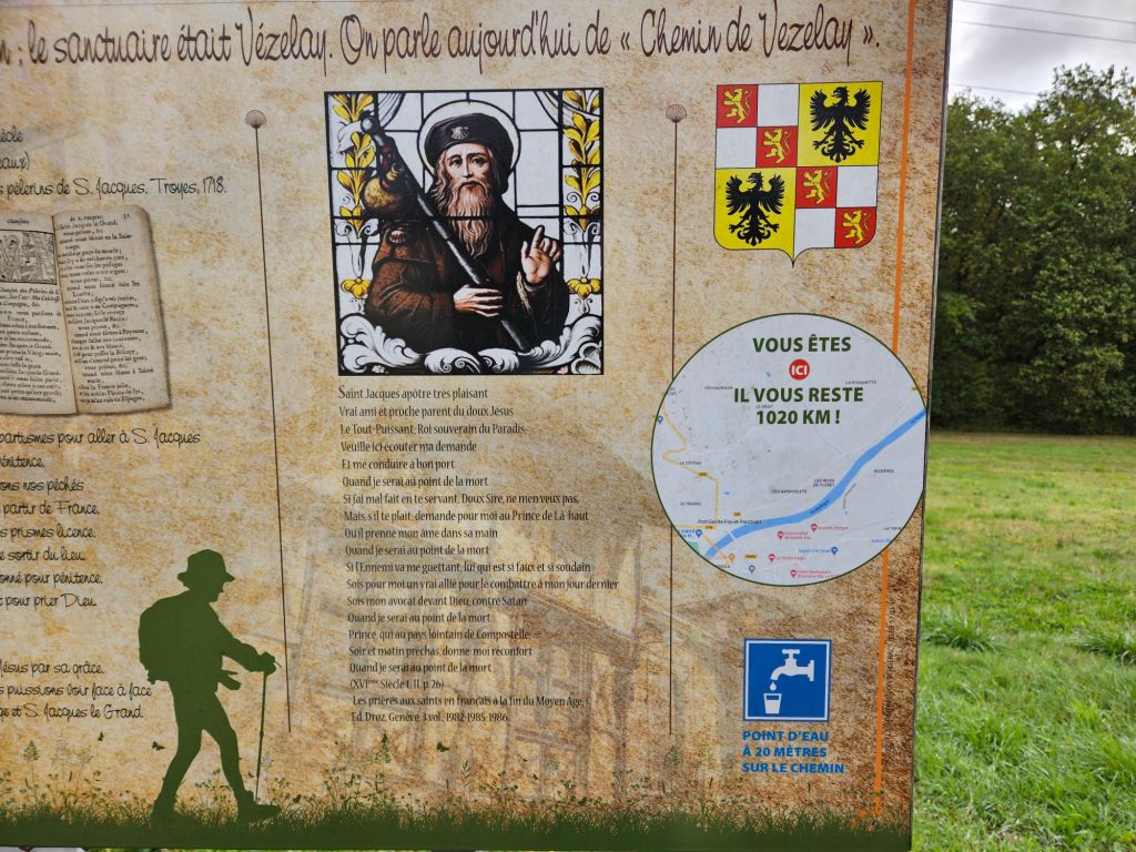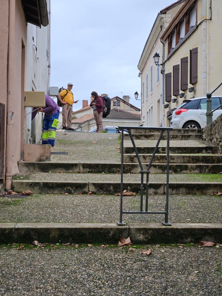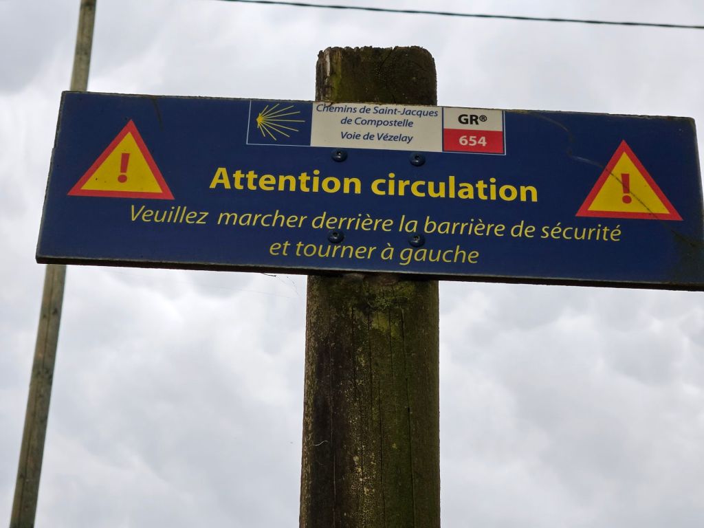 We went up the hill into town on the off chance the Mairie (town office) was open for a pilgrim stamp – it wasn’t but this guy made sure we had a howling welcome.