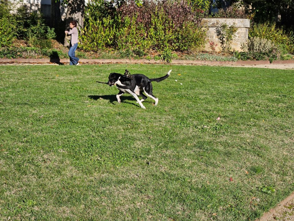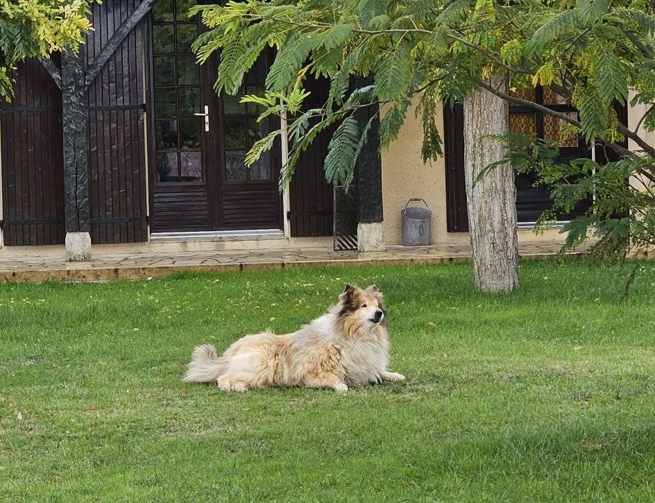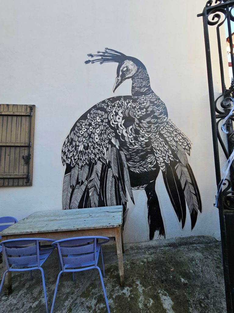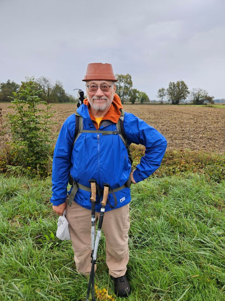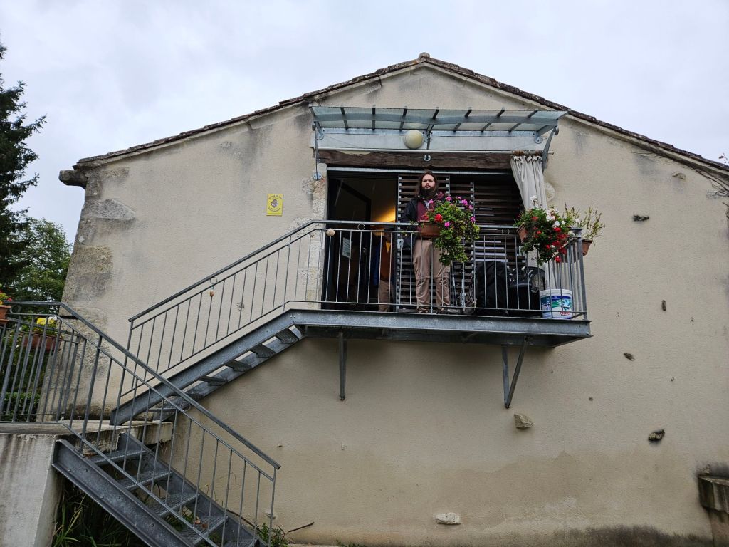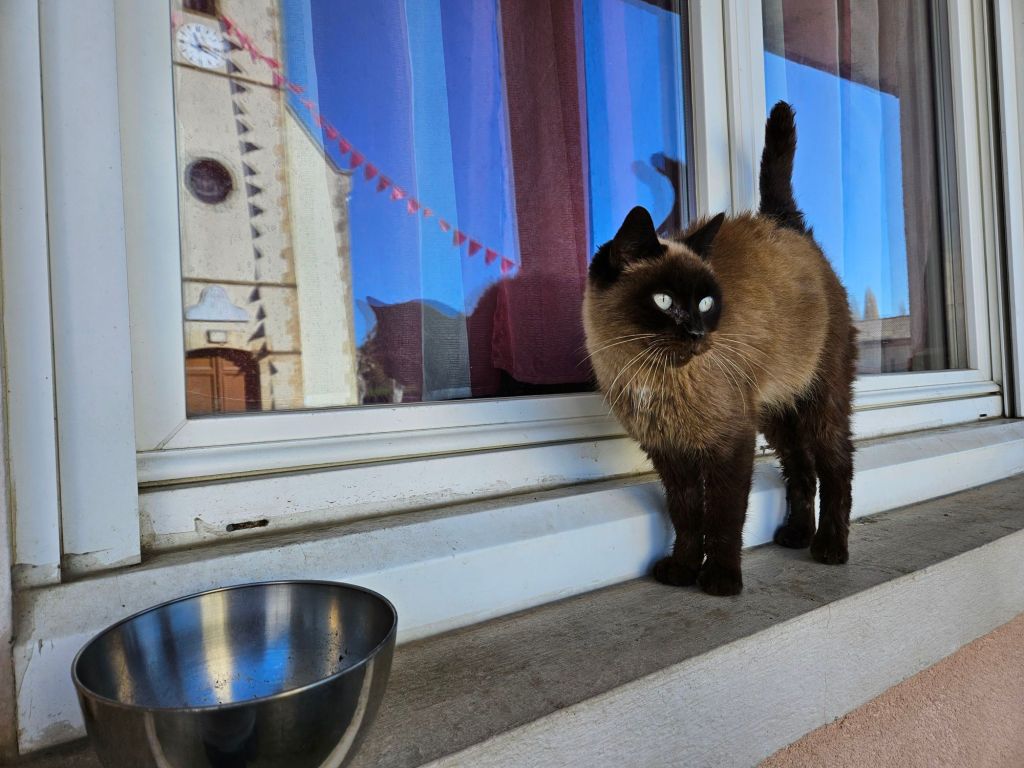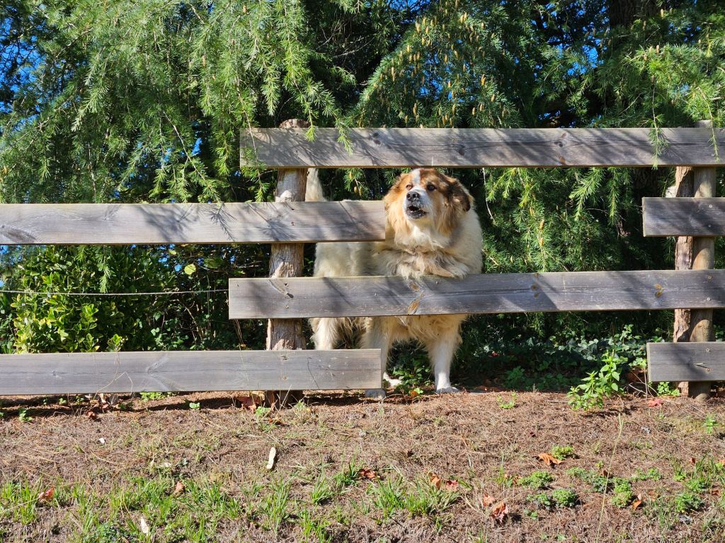 We went up the hill into town on the off chance the Mairie (town office) was open for a pilgrim stamp – it wasn’t but this guy made sure we had a howling welcome.
