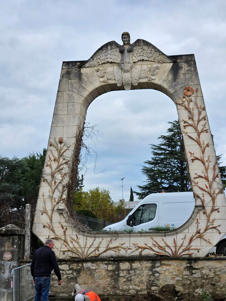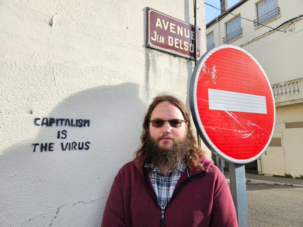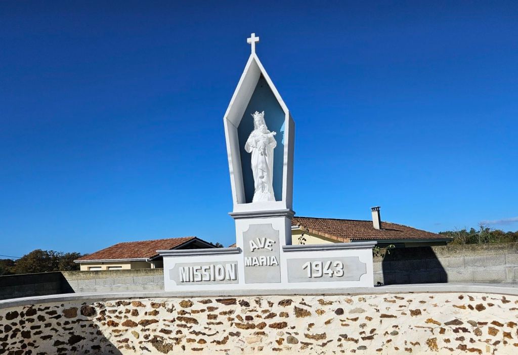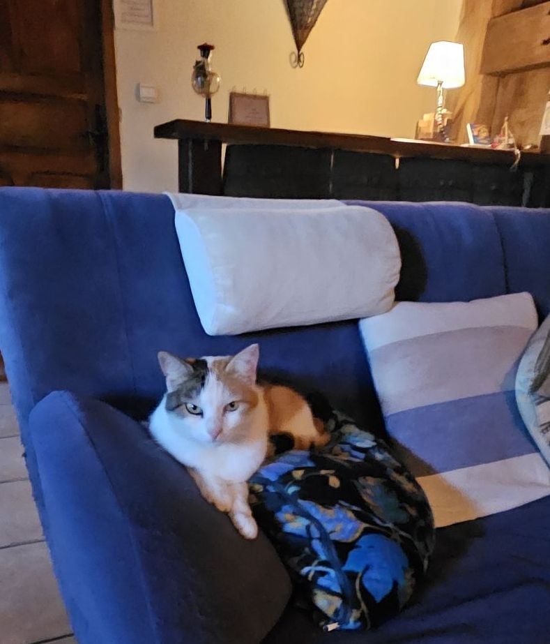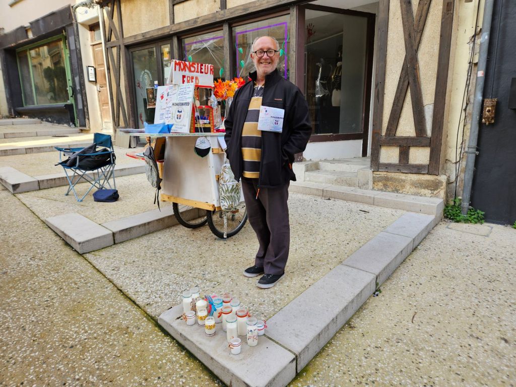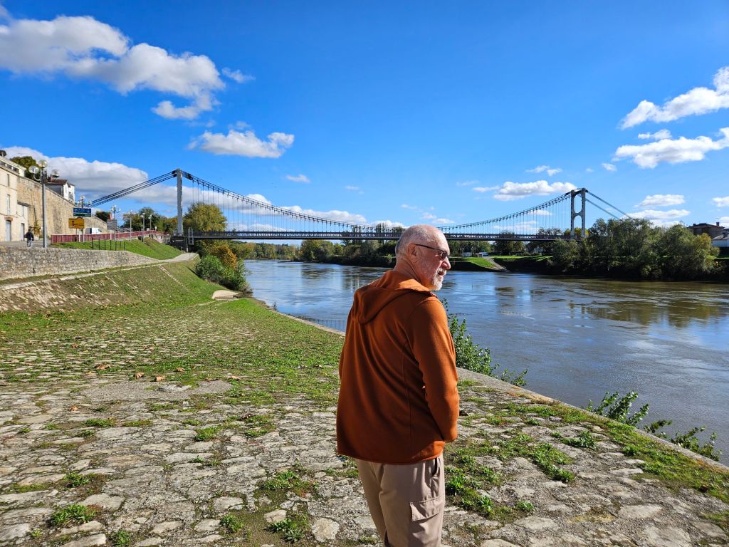 We went up the hill into town on the off chance the Mairie (town office) was open for a pilgrim stamp – it wasn’t but this guy made sure we had a howling welcome.