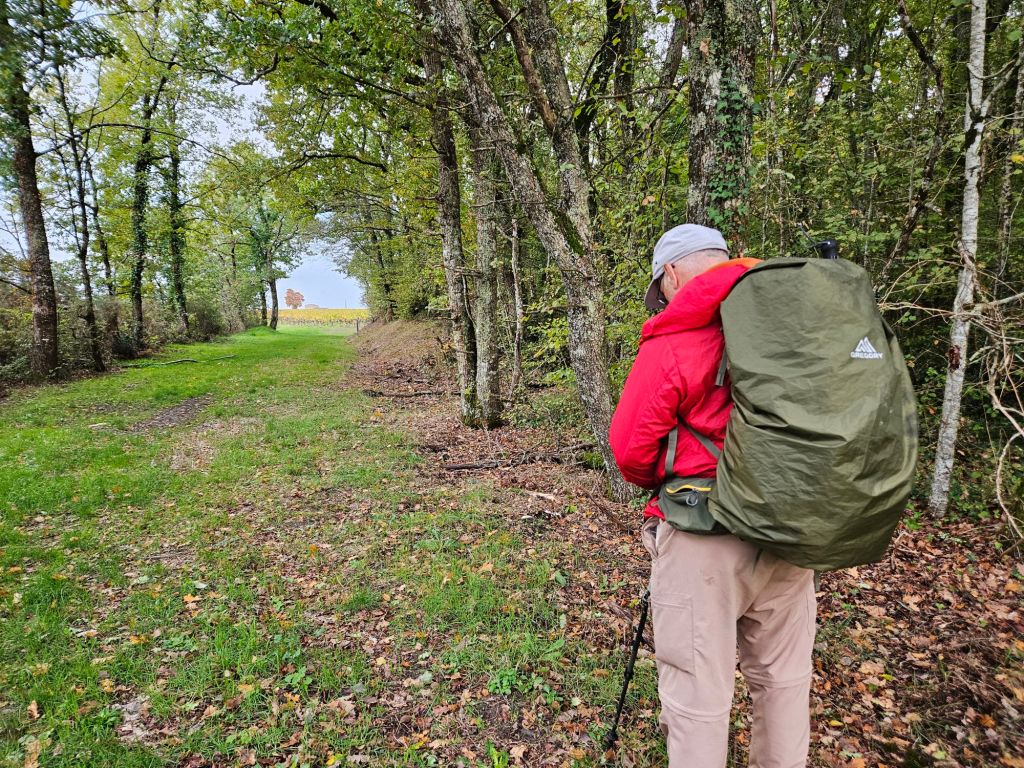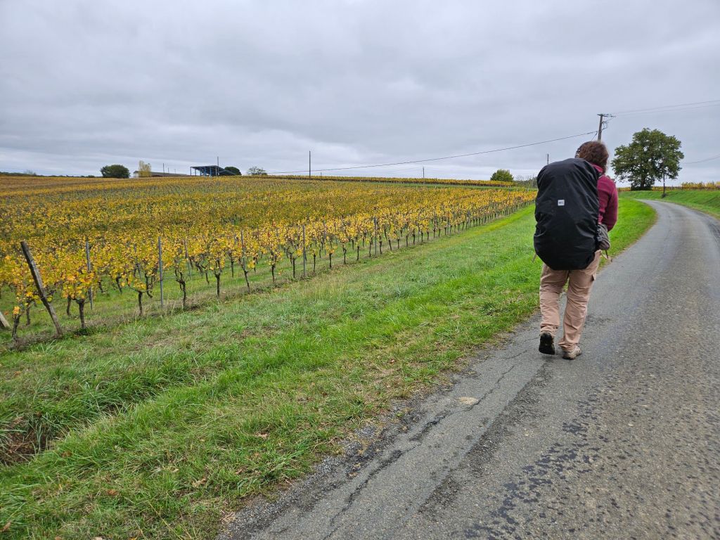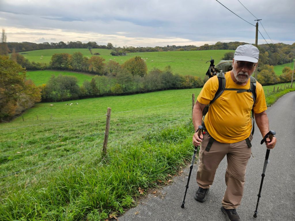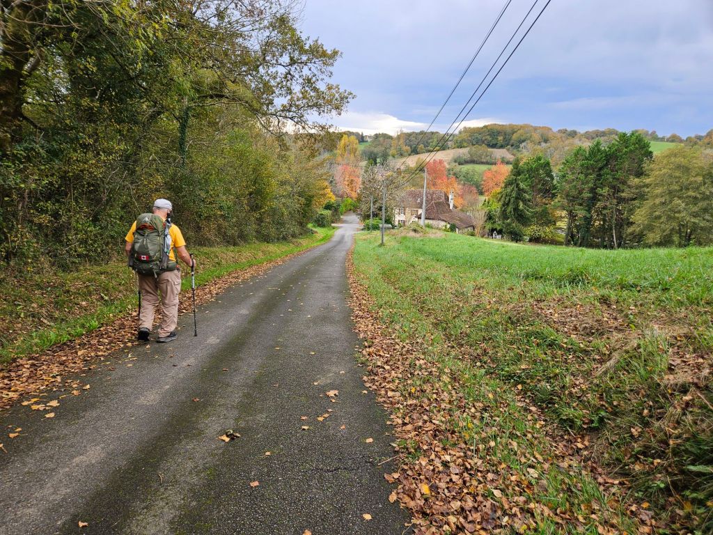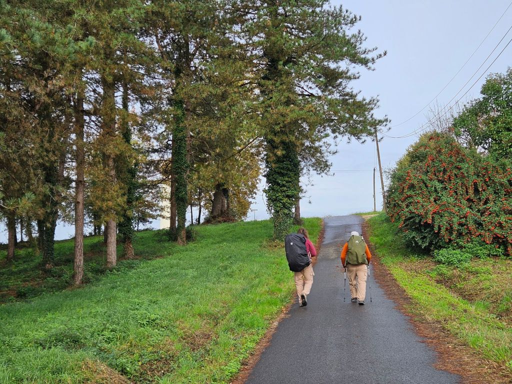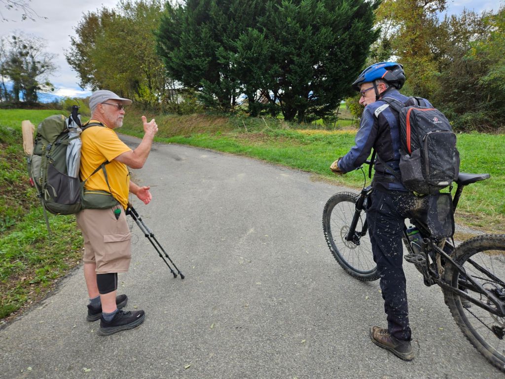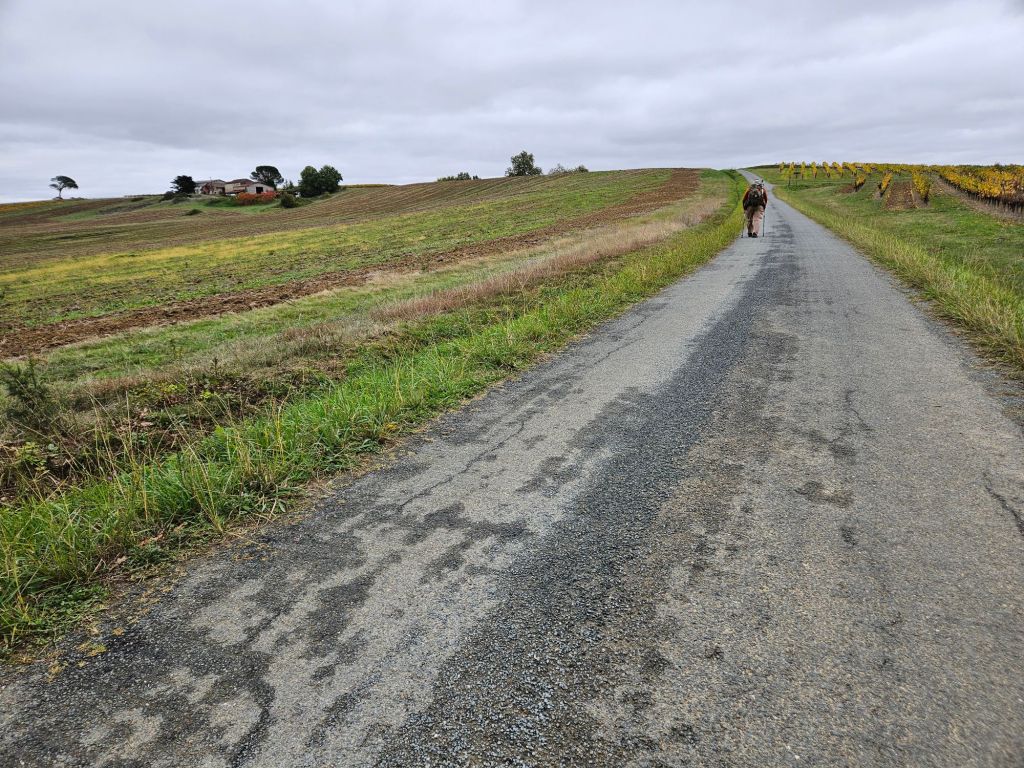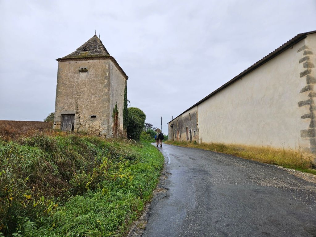 We had an enjoyable breakfast with the Irish couple in anticipation of a 22 km hilly day. The breakfasts here are usually only baguette, croissant or toast with coffee, tea or hot chocolate. And plain yoghurt and sometimes apple sauce. I don’t know what’s with the plain yoghurt but I think the intent is to add the jam or honey of your choice. But on these farm places the jams and juices, even honey, are often made on site or at least local. Peanut butter is not a thing here but Nutella is huge! Today there were hard boiled eggs and we pocketed them for our lunch (during which Ken’s fell into pieces when he tried to peel it and I spit mine out it was so gamey and inedible – not sure what those chickens were eating 😬)