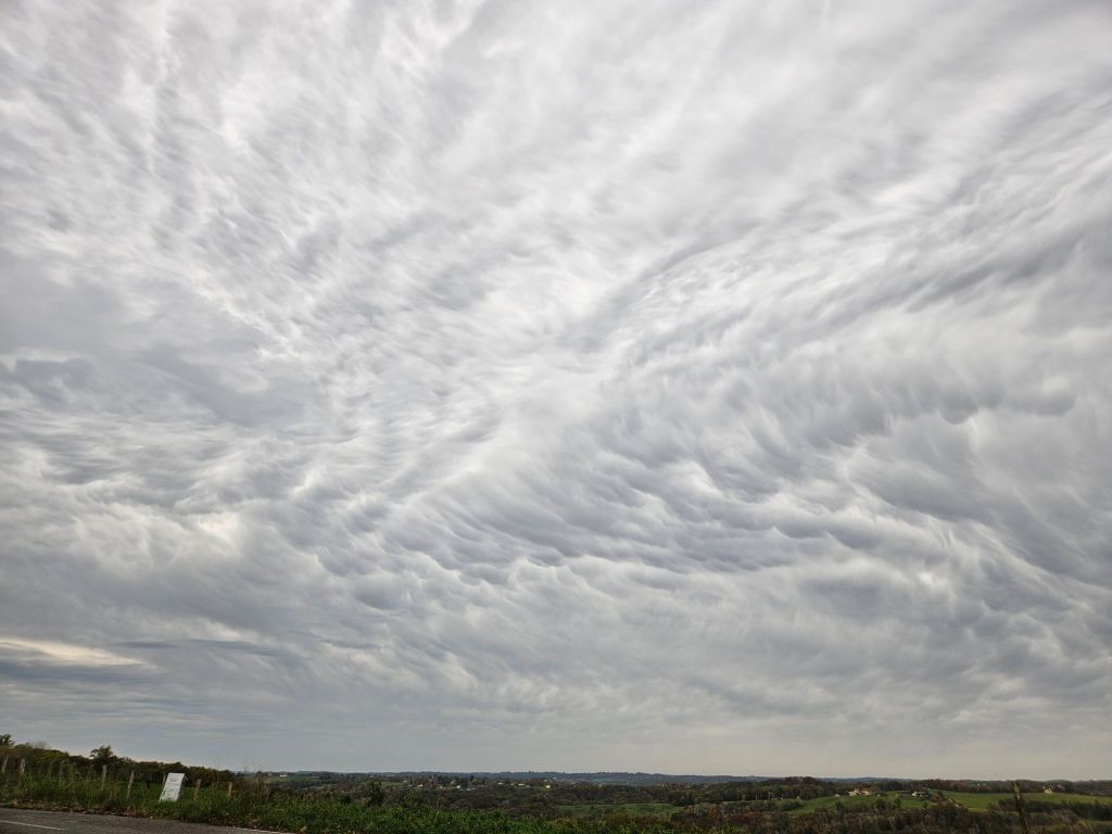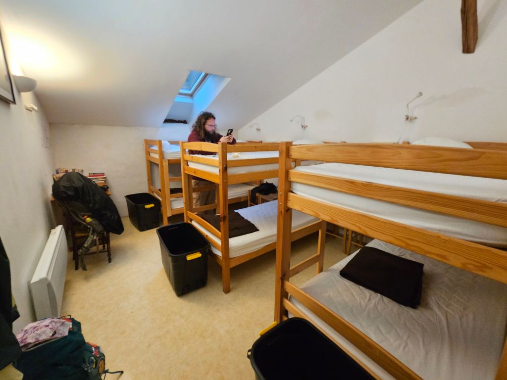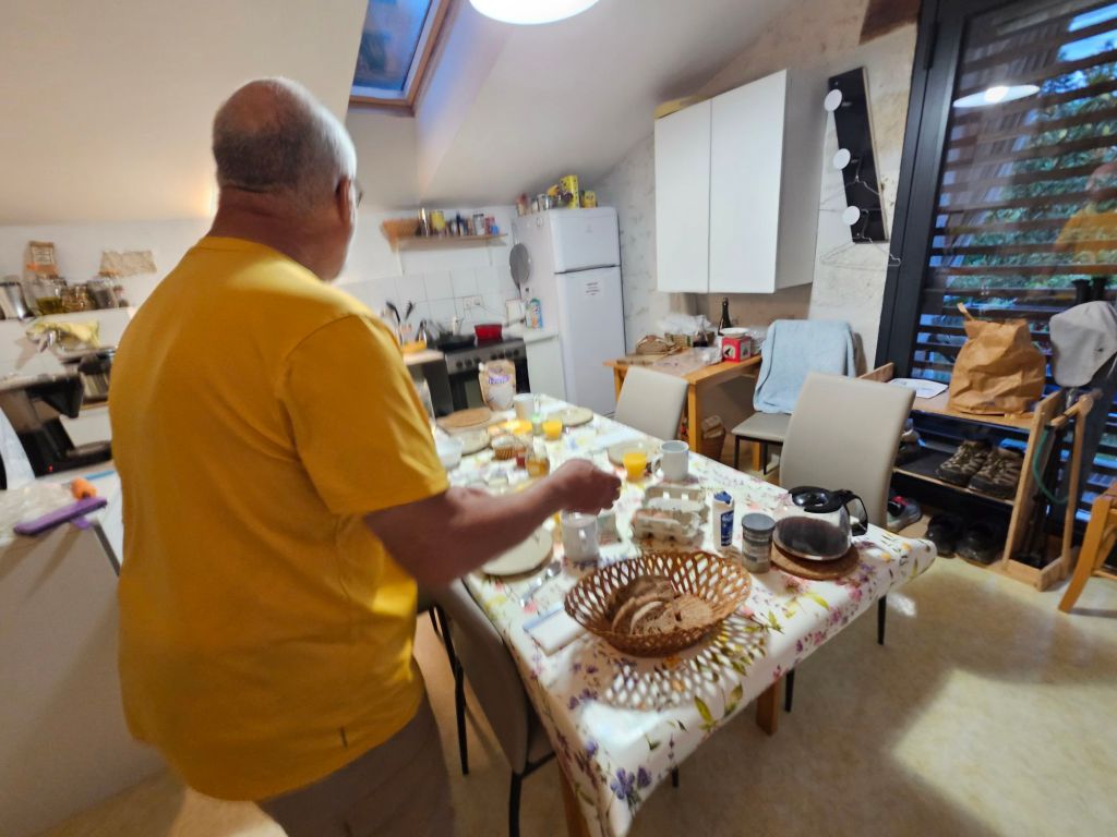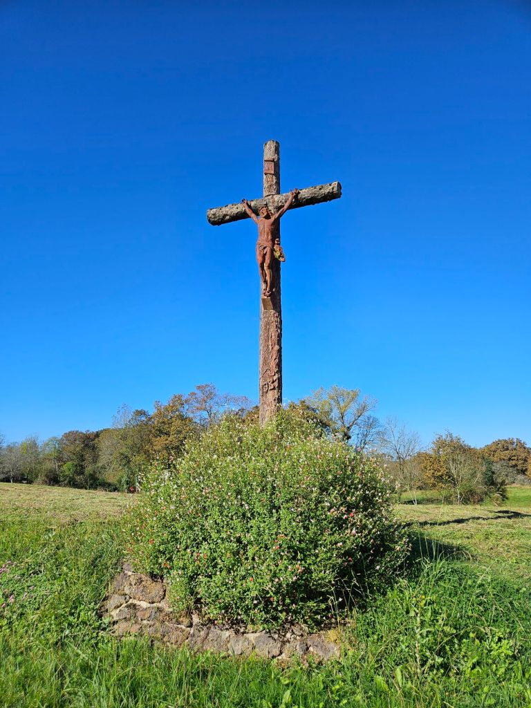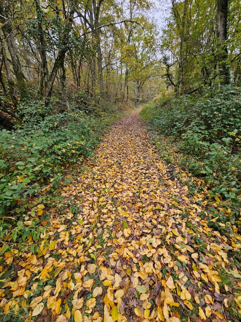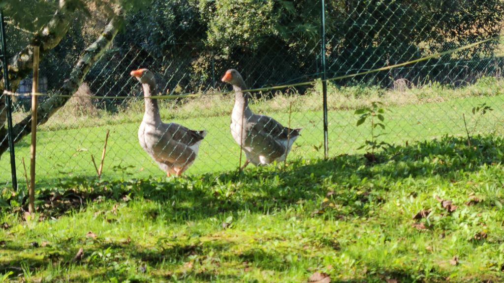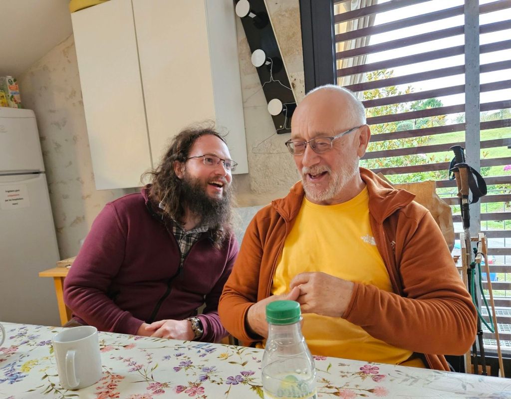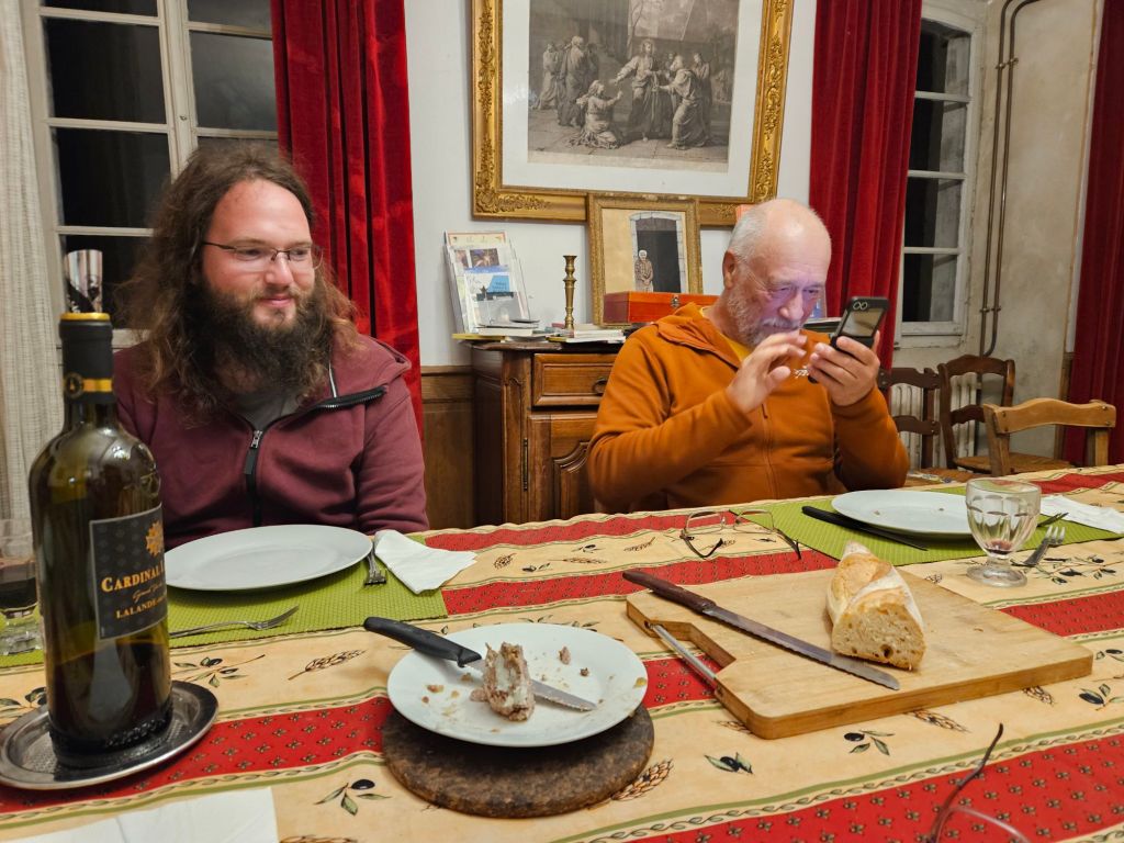 We had an enjoyable breakfast with the Irish couple in anticipation of a 22 km hilly day. The breakfasts here are usually only baguette, croissant or toast with coffee, tea or hot chocolate. And plain yoghurt and sometimes apple sauce. I don’t know what’s with the plain yoghurt but I think the intent is to add the jam or honey of your choice. But on these farm places the jams and juices, even honey, are often made on site or at least local. Peanut butter is not a thing here but Nutella is huge! Today there were hard boiled eggs and we pocketed them for our lunch (during which Ken’s fell into pieces when he tried to peel it and I spit mine out it was so gamey and inedible – not sure what those chickens were eating 😬)