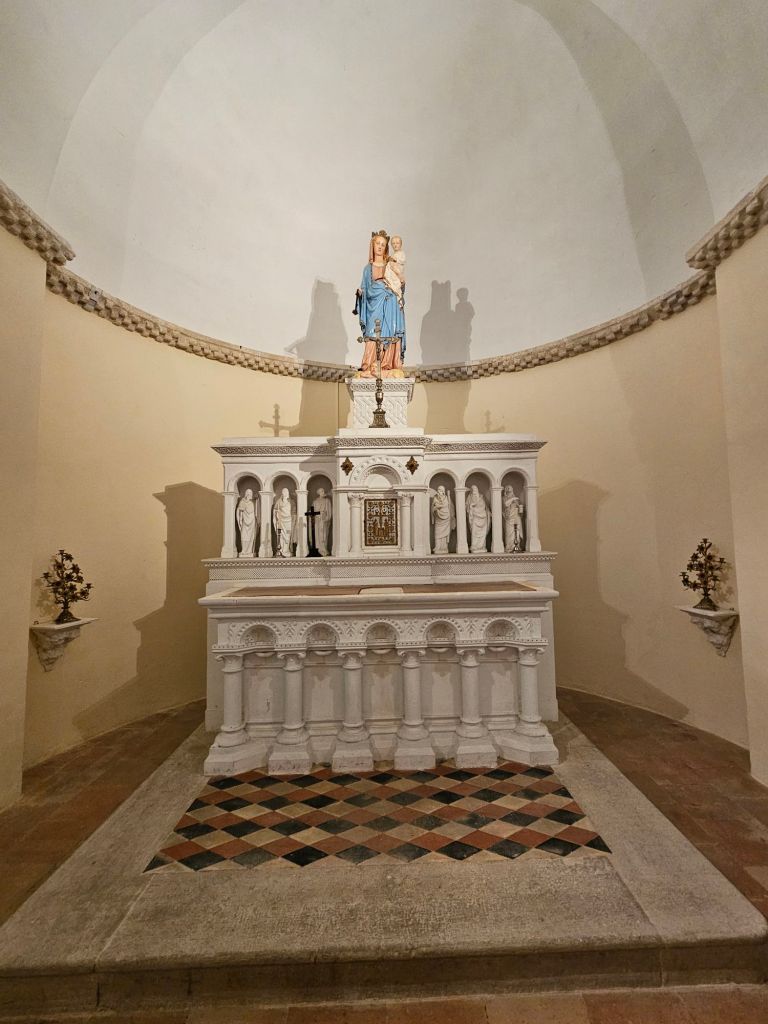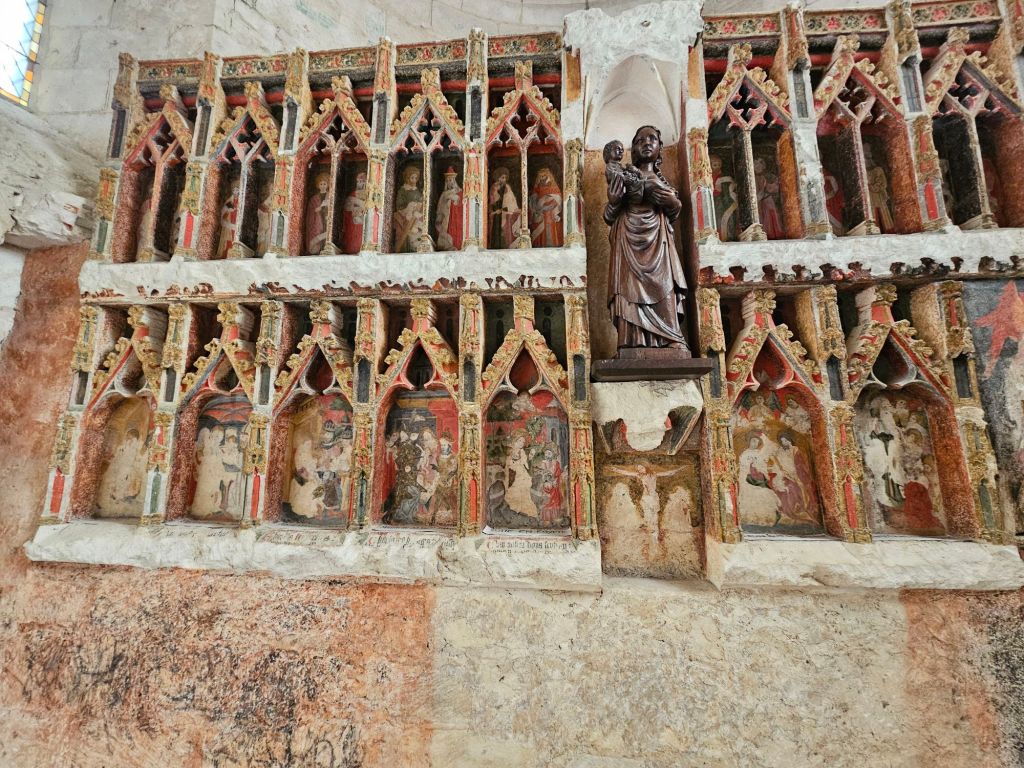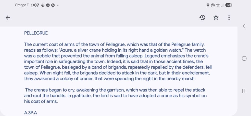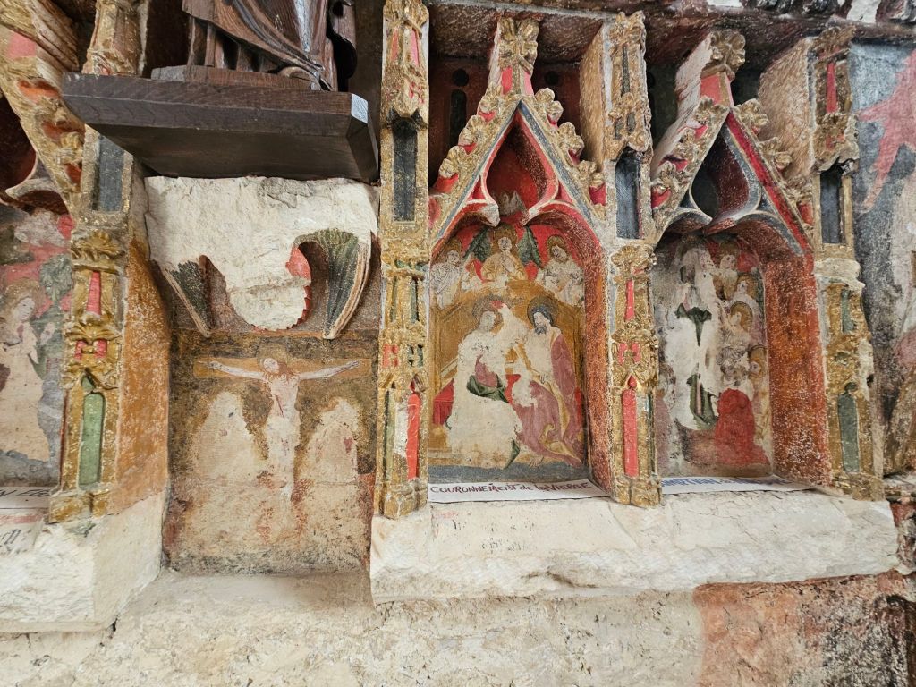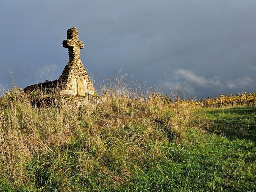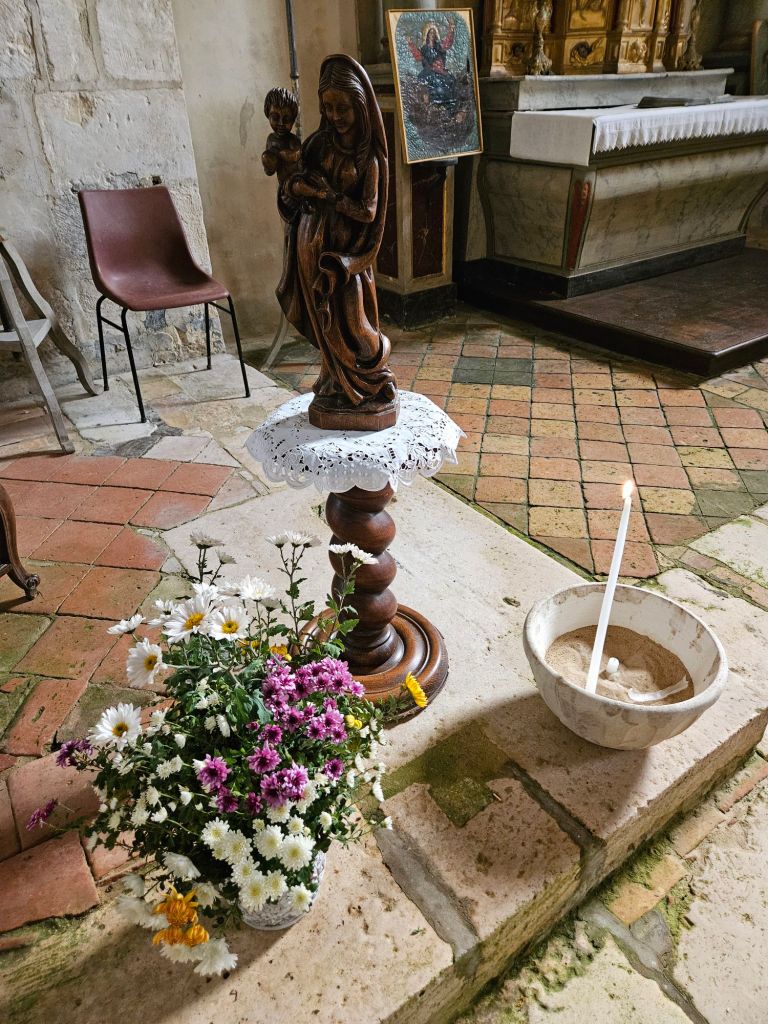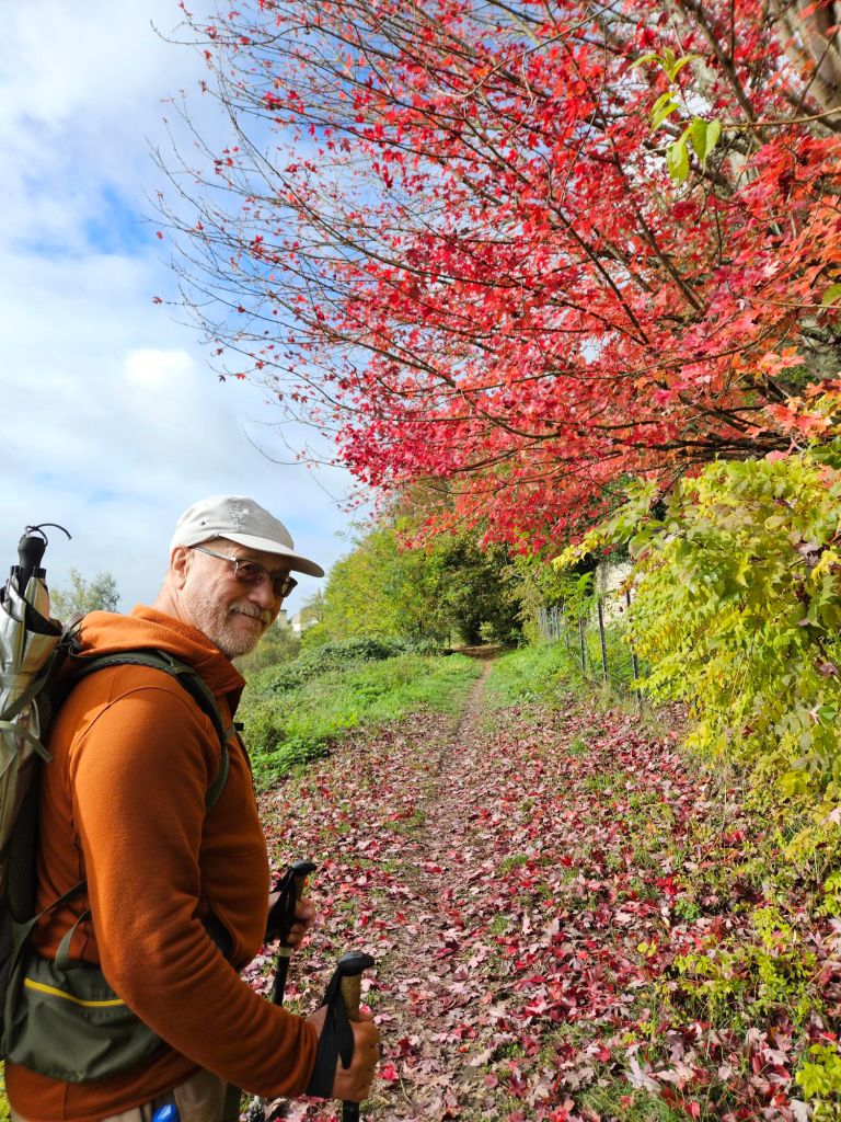 Slowly making his way up the wall. If you are wondering why sometimes I post pictures of minutiae it’s because these things are part of our walking memories and I intend to turn the blog into a memory book when we get home. I took a picture of a kernel of corn on the road to remind us of how we followed a corn trail for several days and how we have moved through the different regions of France.
