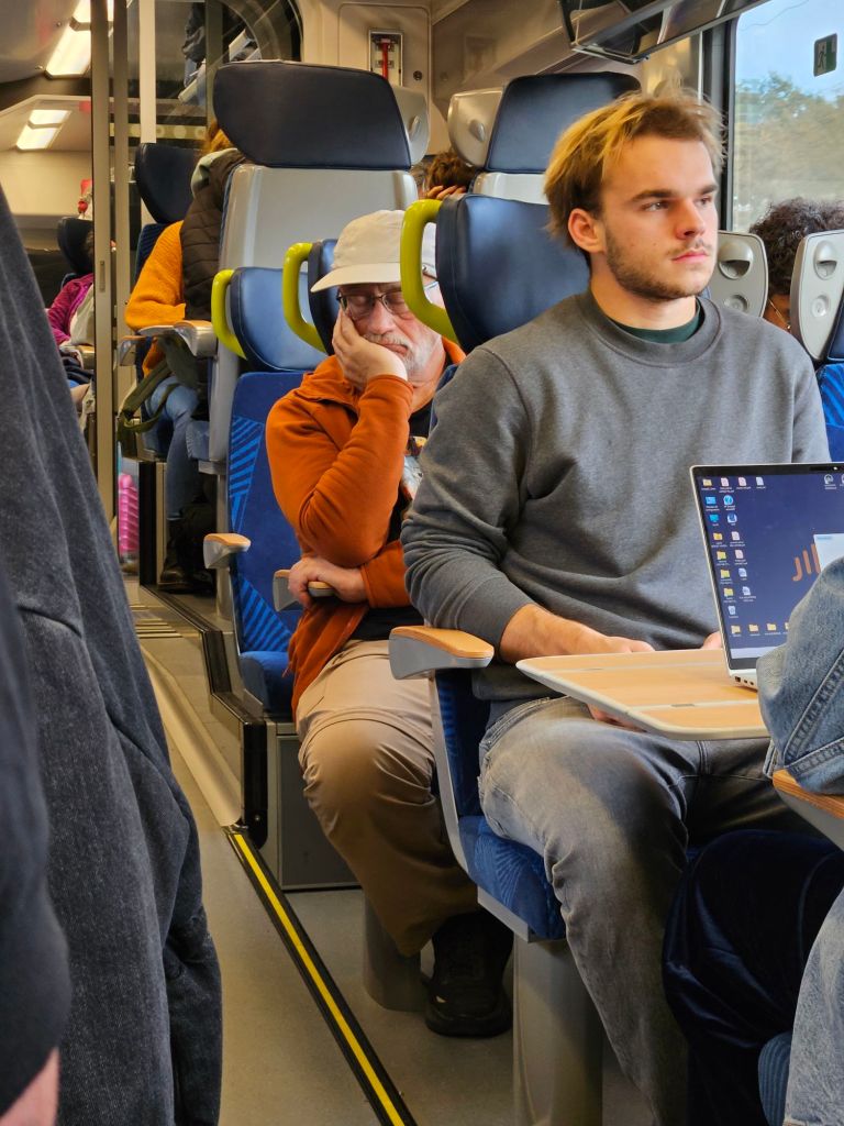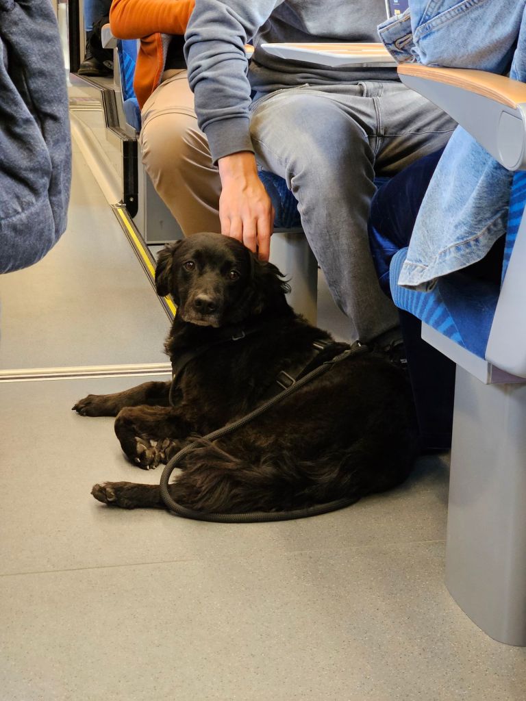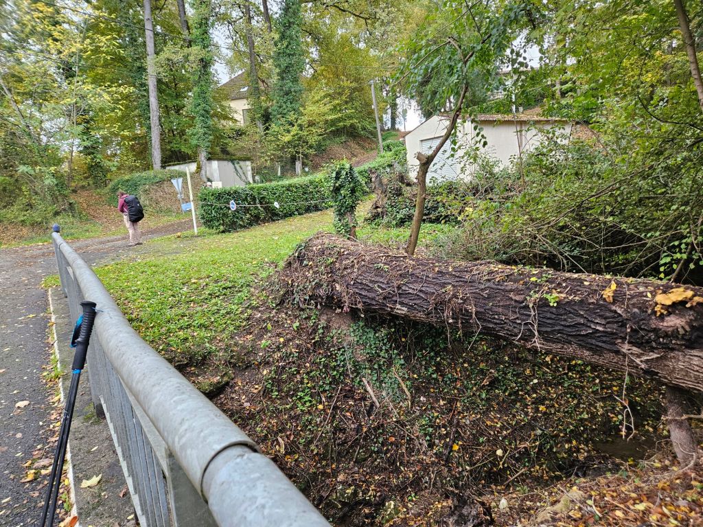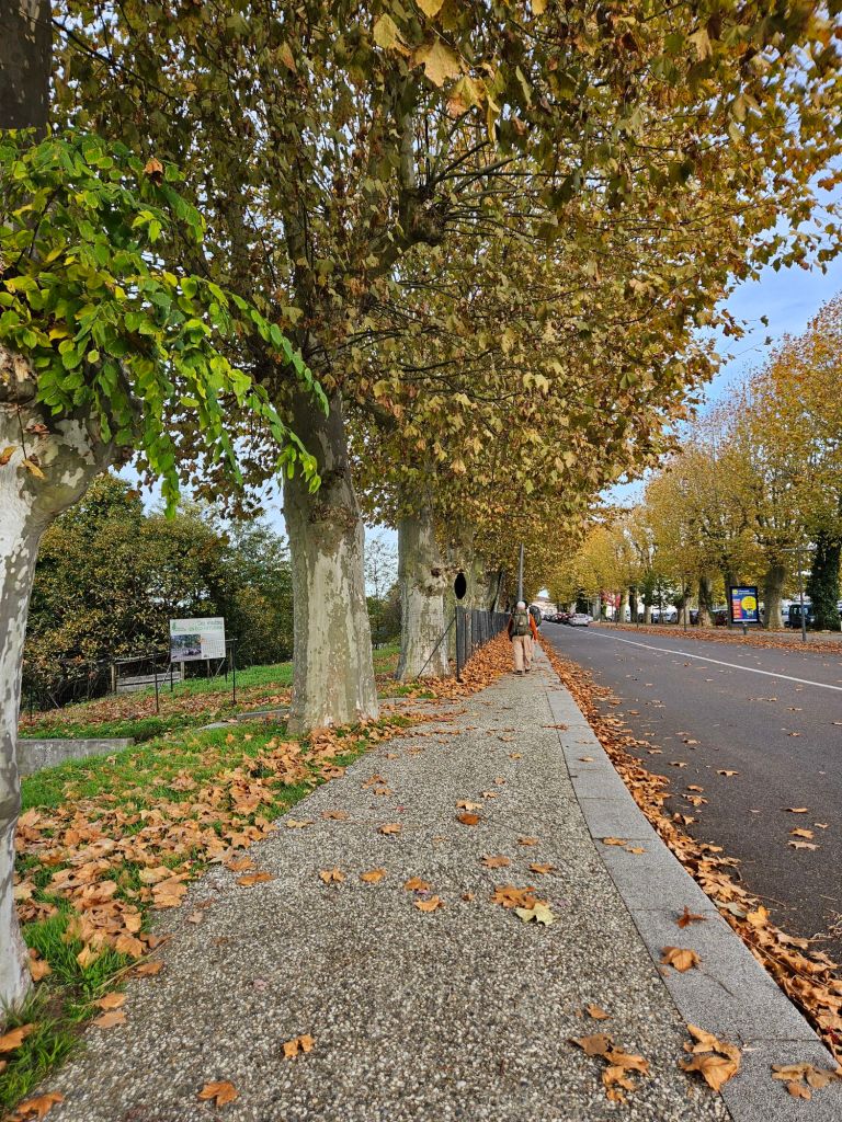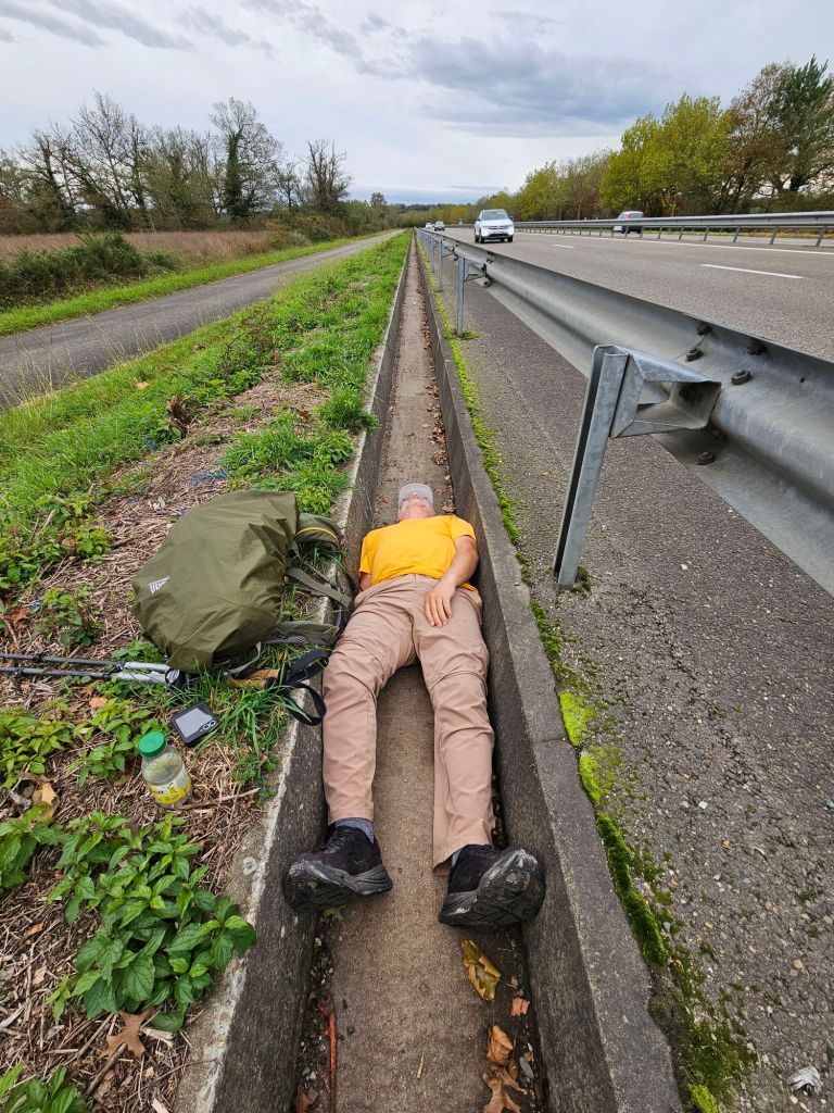 Walk behind the barrier and not on the grinder. They should do this more often. We hate grinders (Peter’s word for busy roads that we have to walk down.