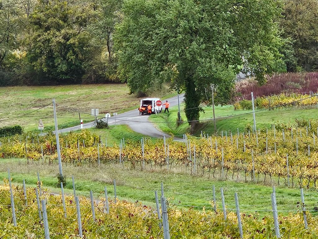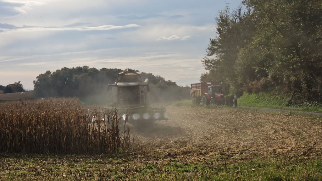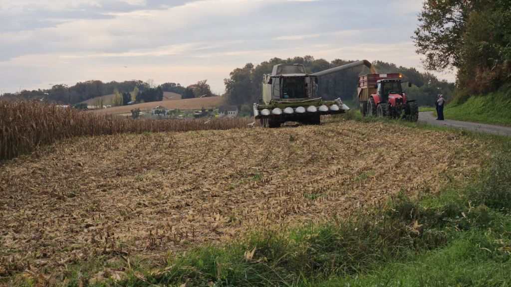 Back on the grinder for a bit – the corn harvest is ongoing and we have to move off the road, which is annoying, especially if there are nettles (France excels at nettle growing) or only 1/2 an inch of shoulder.