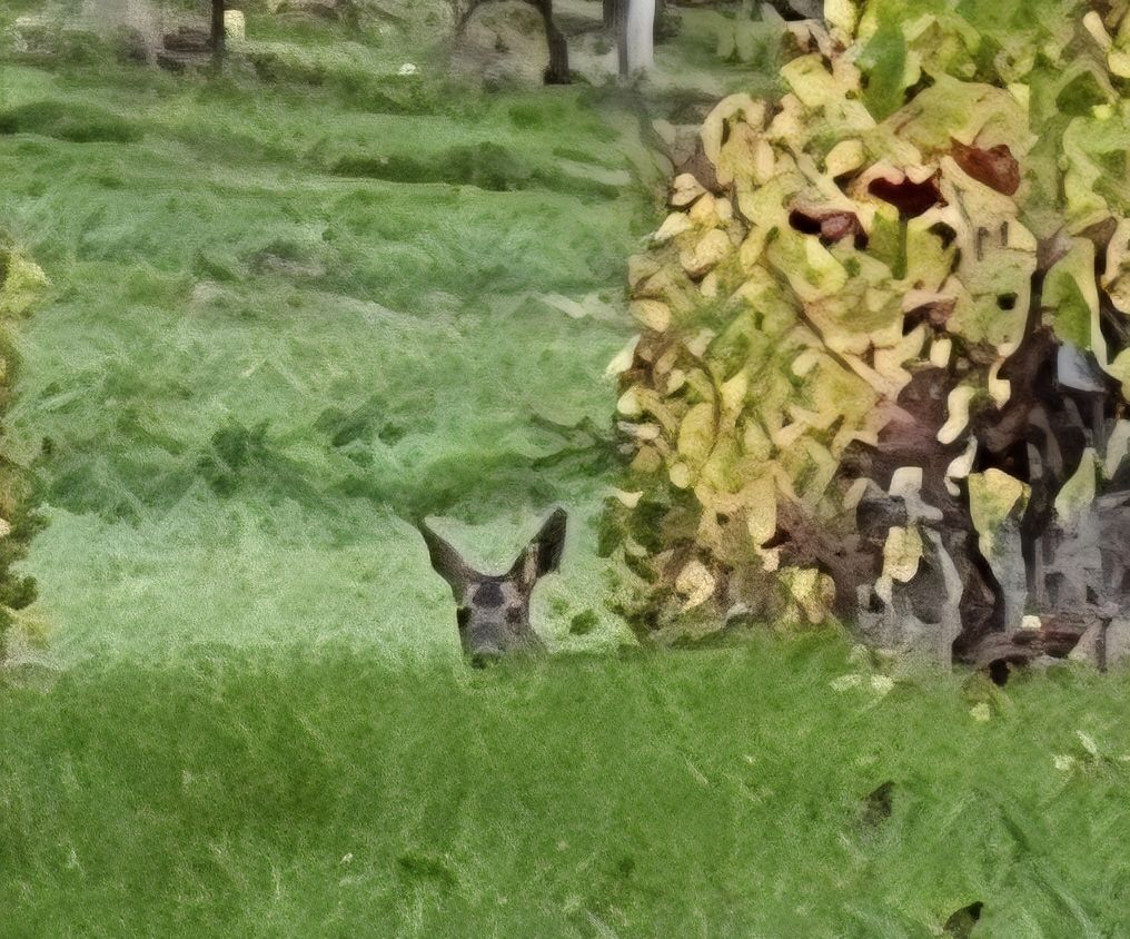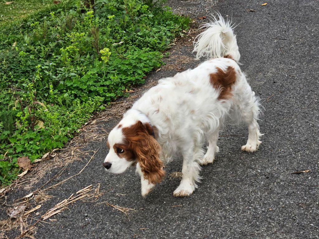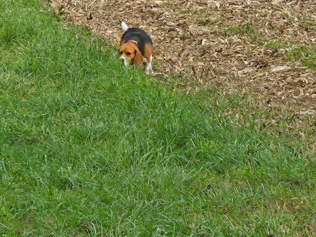 This beagle (above and below) was running ahead of us for quite a while, dodging up into the fields. The boys thought he was just out exploring. I hope so.