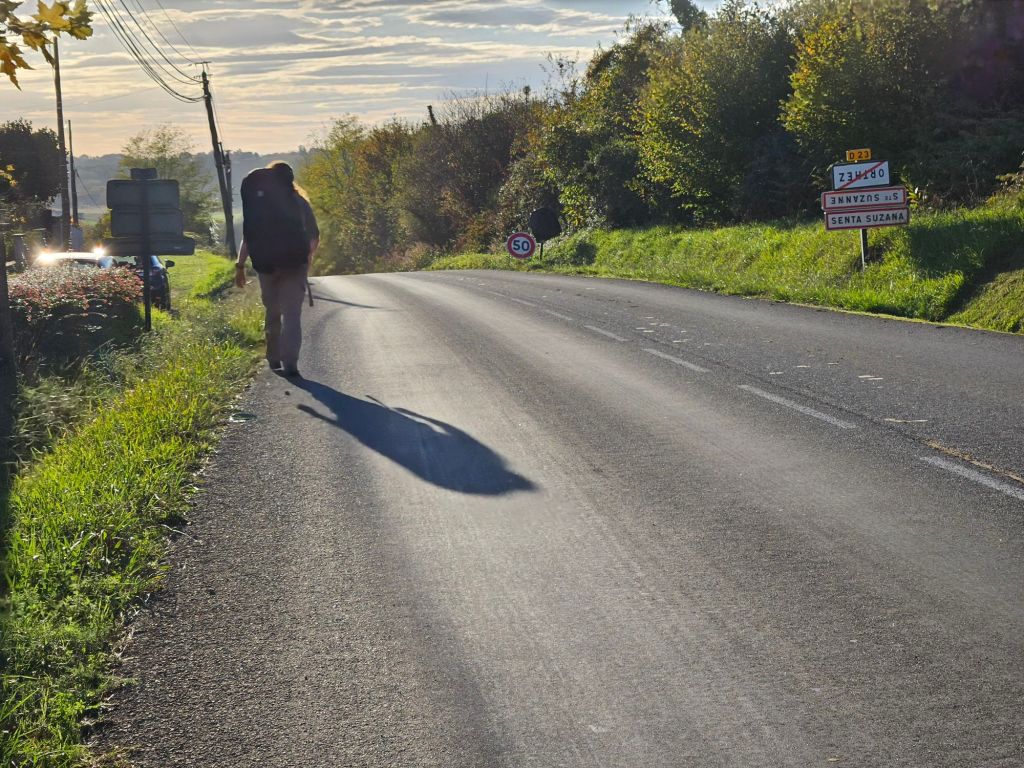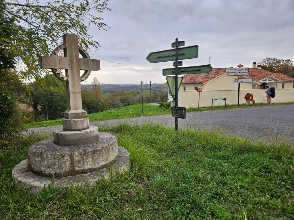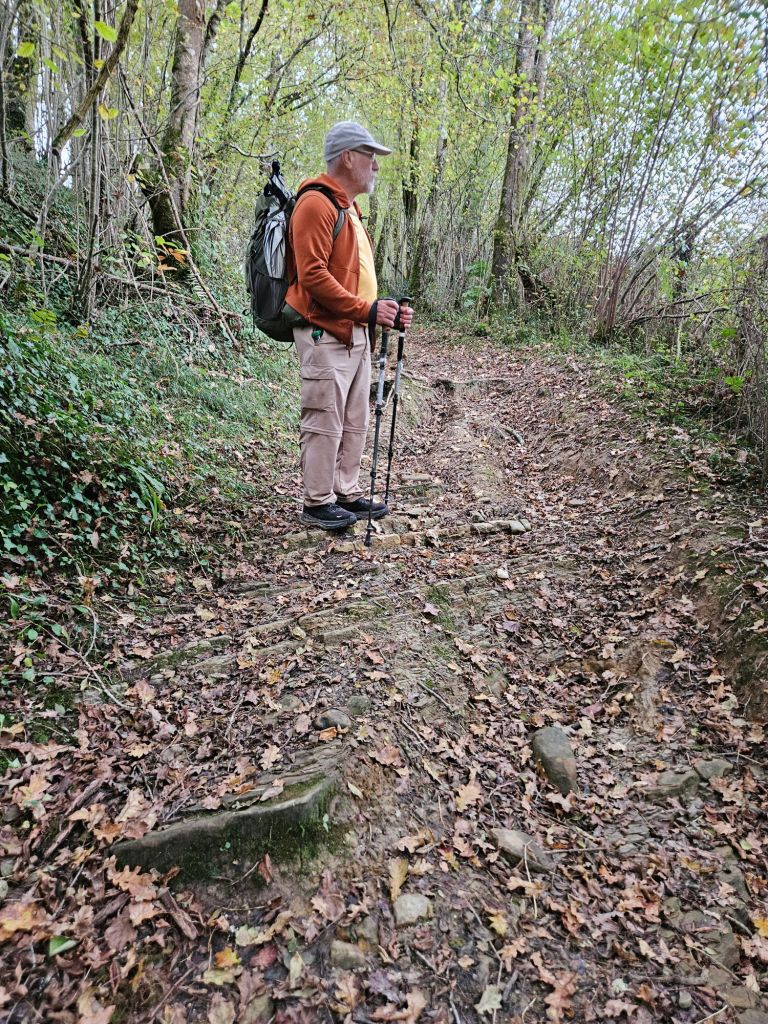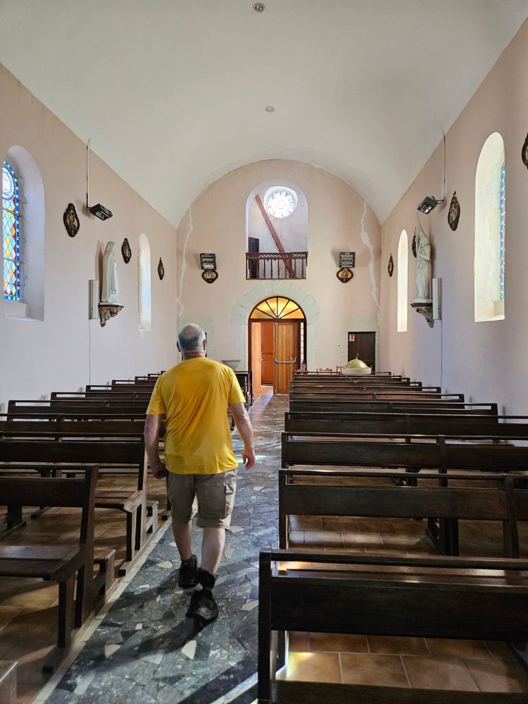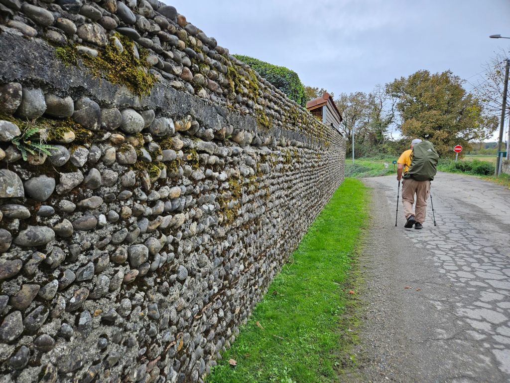This town is L’Hopital d’Orion, so named because it was the site of a pilgrim hospital/stopping place since the 1100s. Only parts of the original church remain. It is humbling to think that as we walk this route, countless others have gone before us for a thousand years. No merino clothing or fancy shoes, no Twix bar or Powerade from the local shop – only a gourd and a creek for water. Always on the watch out for brigands and thieves. The only thief I worry about is the guy who sneaks into my chocolate stash when I am not looking. No names mentioned.