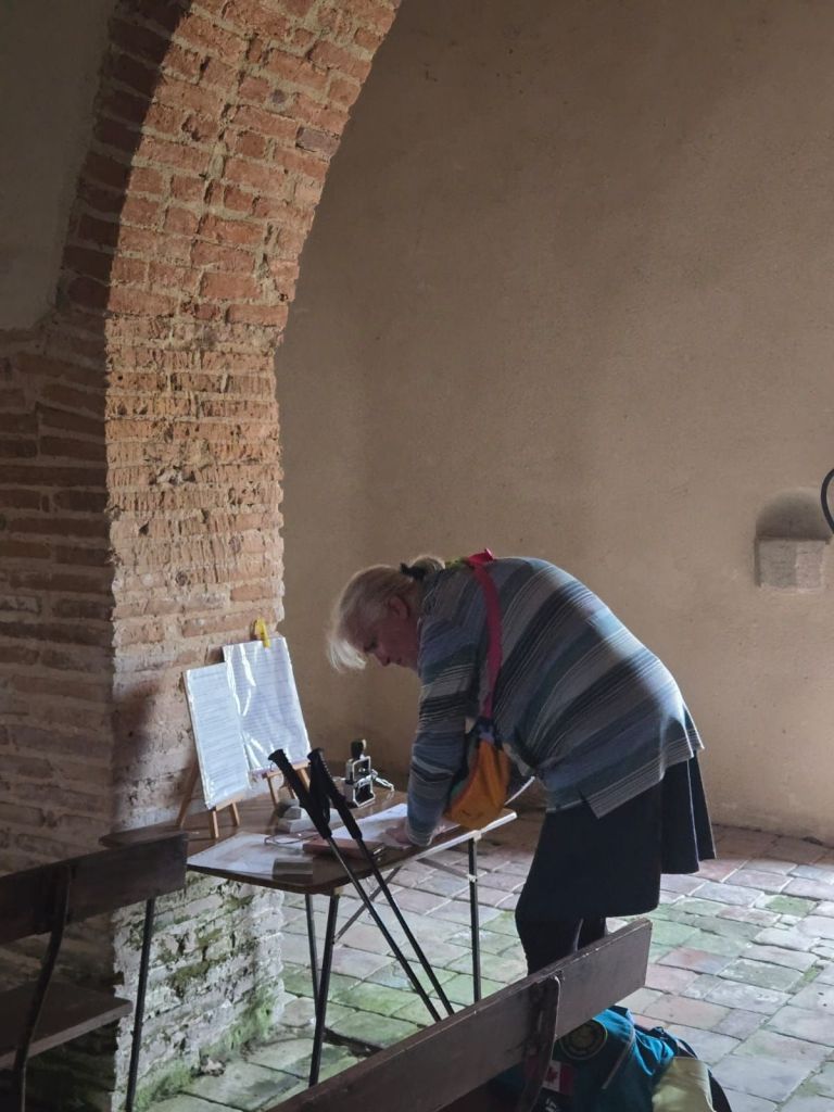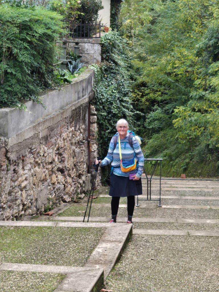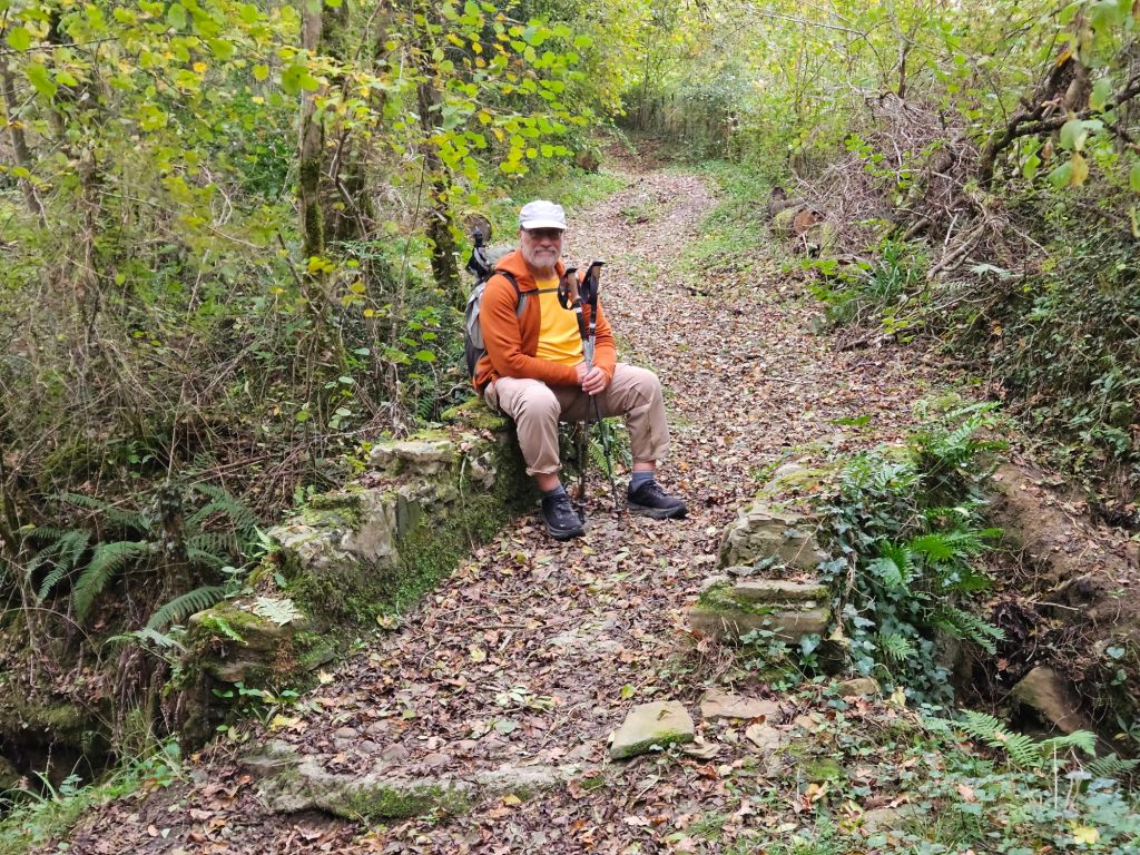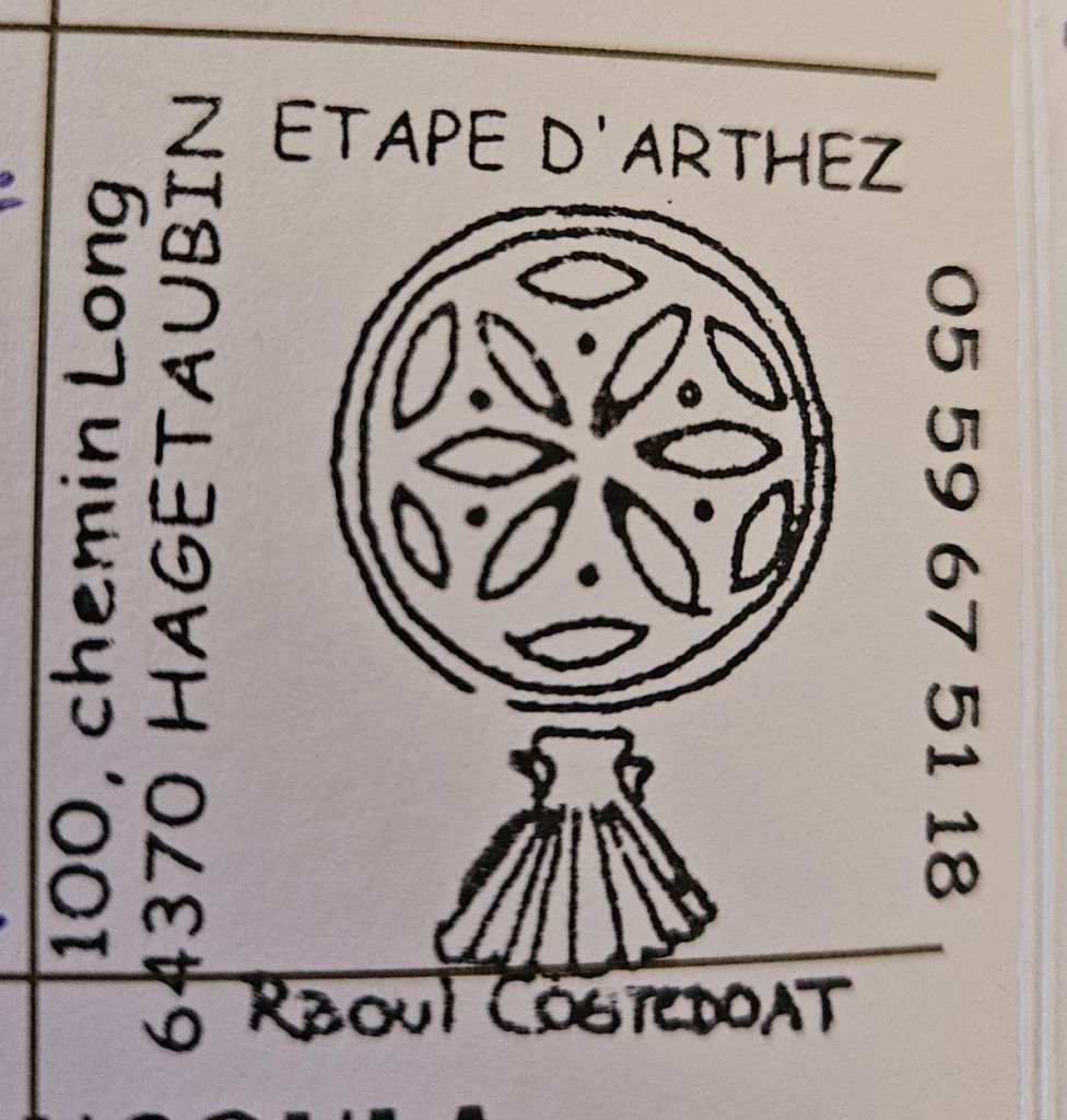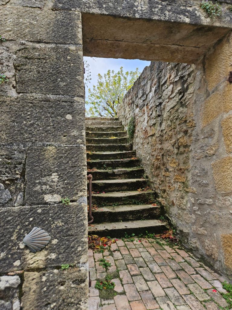 This town is L’Hopital d’Orion, so named because it was the site of a pilgrim hospital/stopping place since the 1100s. Only parts of the original church remain. It is humbling to think that as we walk this route, countless others have gone before us for a thousand years. No merino clothing or fancy shoes, no Twix bar or Powerade from the local shop – only a gourd and a creek for water. Always on the watch out for brigands and thieves. The only thief I worry about is the guy who sneaks into my chocolate stash when I am not looking. No names mentioned.