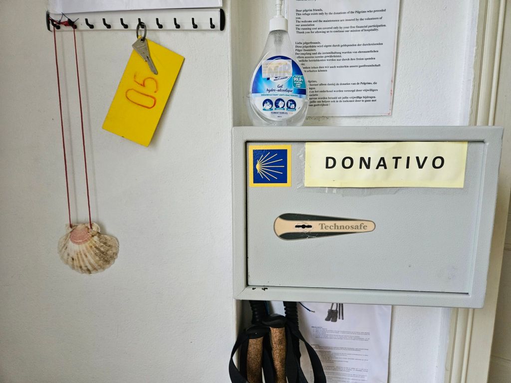 Our pilgrim refuge for the night. And a bathroom stocked with all kinds of soaps, shampoos, creams, even conditioner. Usually you have to supply your own. We always appreciate a day with no rain, enough to eat and drink, and a warm place at night.