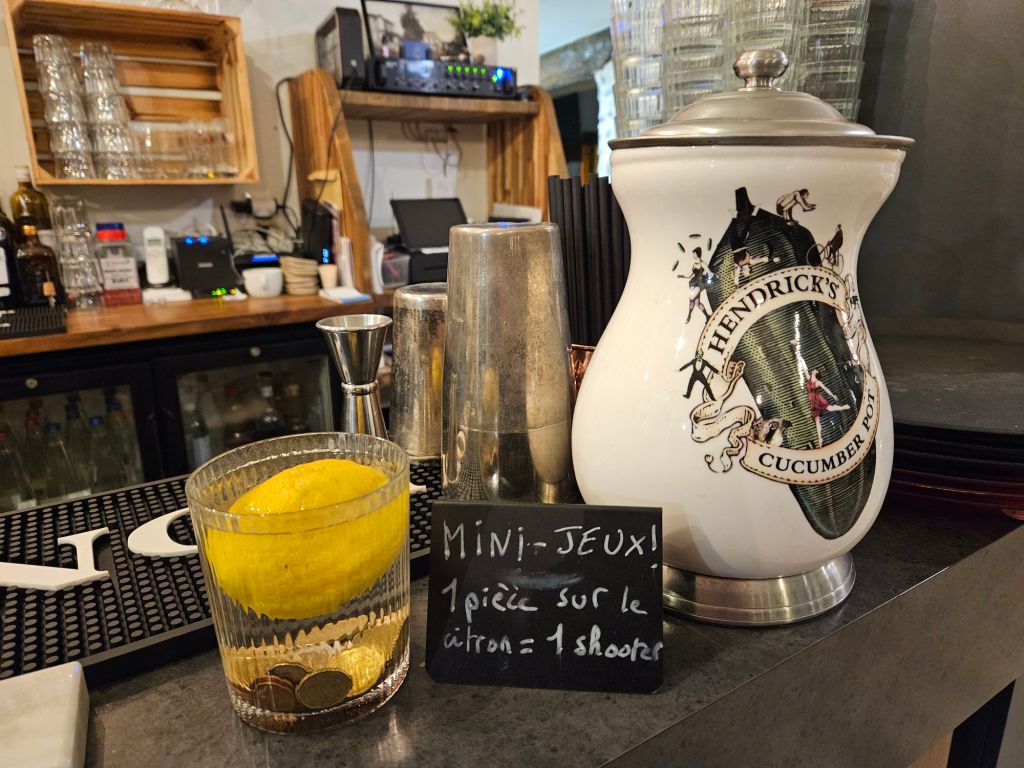 The cucumber jar was to collect the money for the mini-game. If you could get your coin to sit on the lemon without it falling into the glass, you won what was in the cucumber pot. I had no coins so didn’t try.