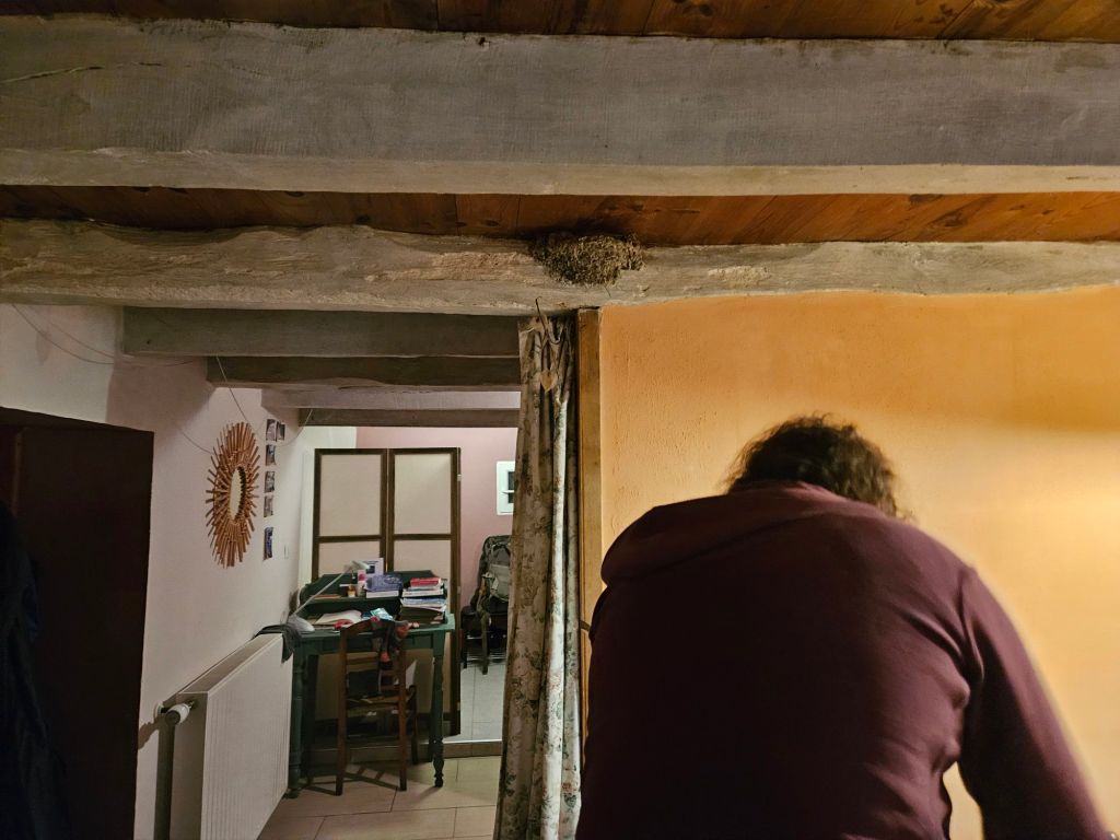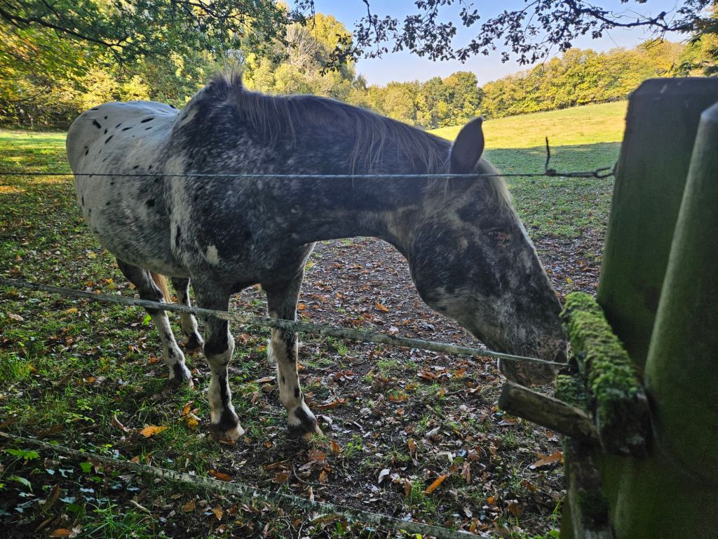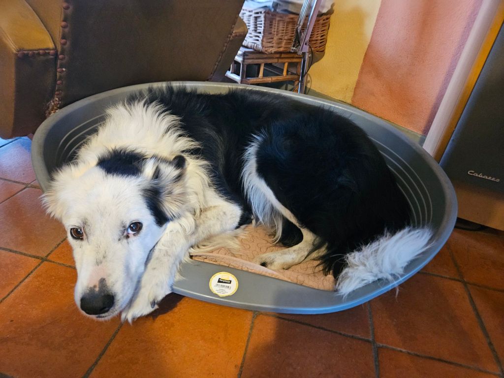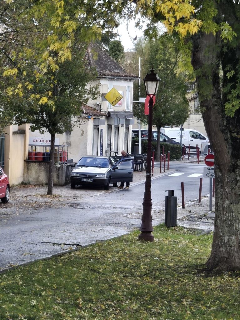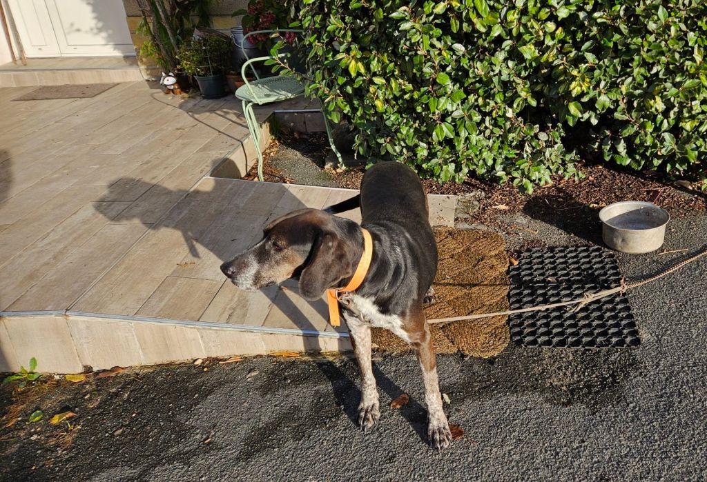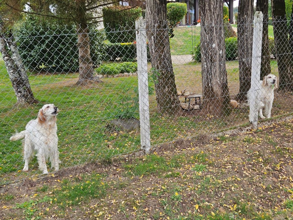 This springer spaniel was running around the yard while the two we knew lived here were tied up. Hmmm. We got to a house about 1/2 km down the road and there was a frantic lady in the street and a man in a car. She asked (in French) if we had seen a spaniel and I was able to tell her (in French) that it was up at the gite. Just then another vehicle came up also looking for the dog. They were worried it would get on the main road because the cars drive too fast and there are many hunters around. Glad we could help.