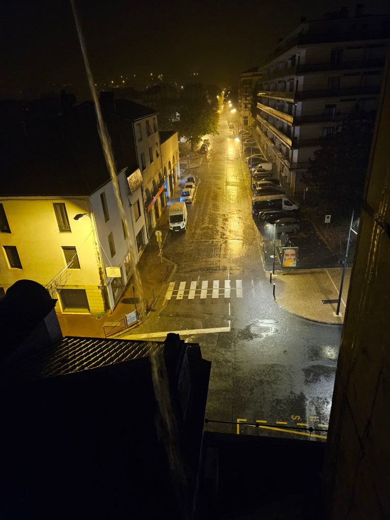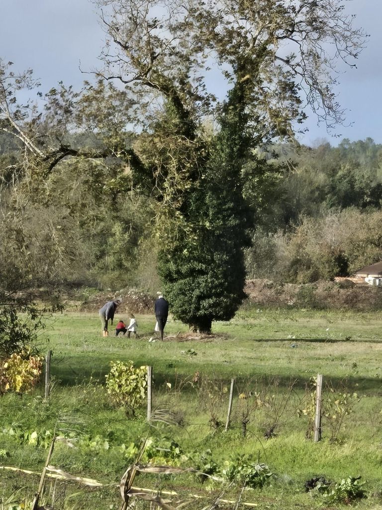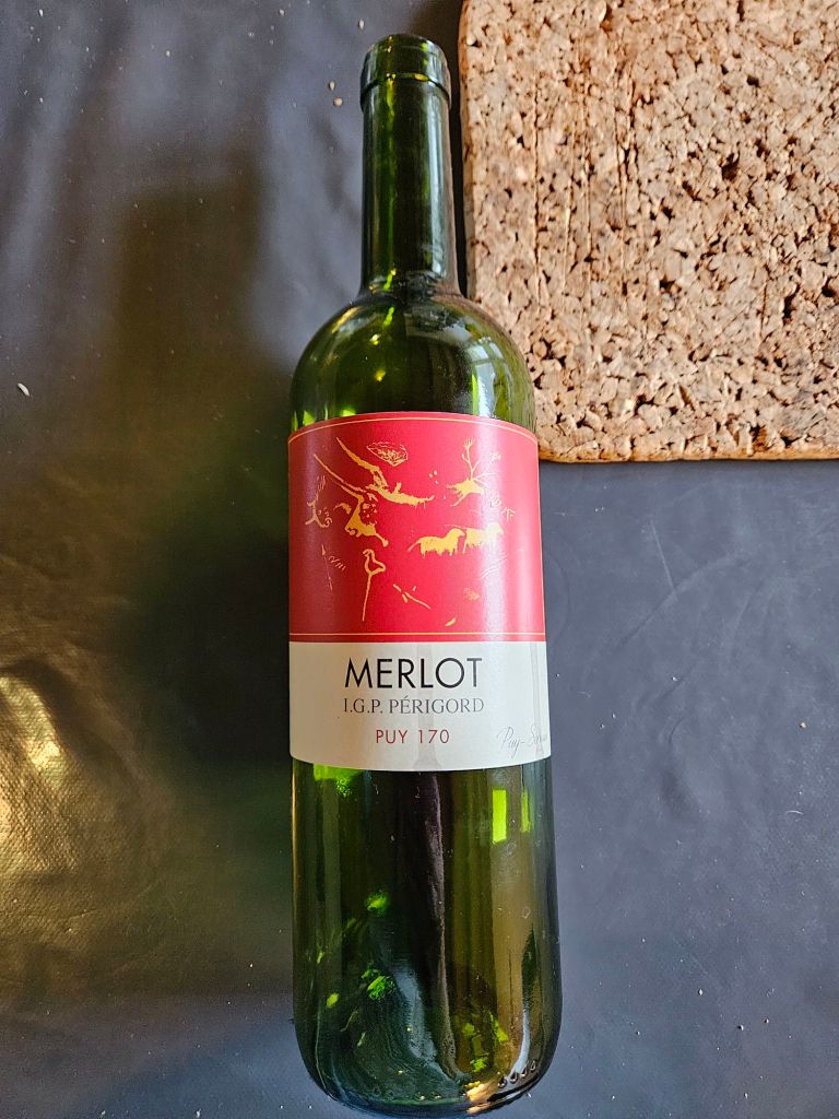 Dinner of duck sausages and rice, with cake and pear compote for desert was brought to us, along with a bottle of their own wine. Our hosts own the vineyards around us.