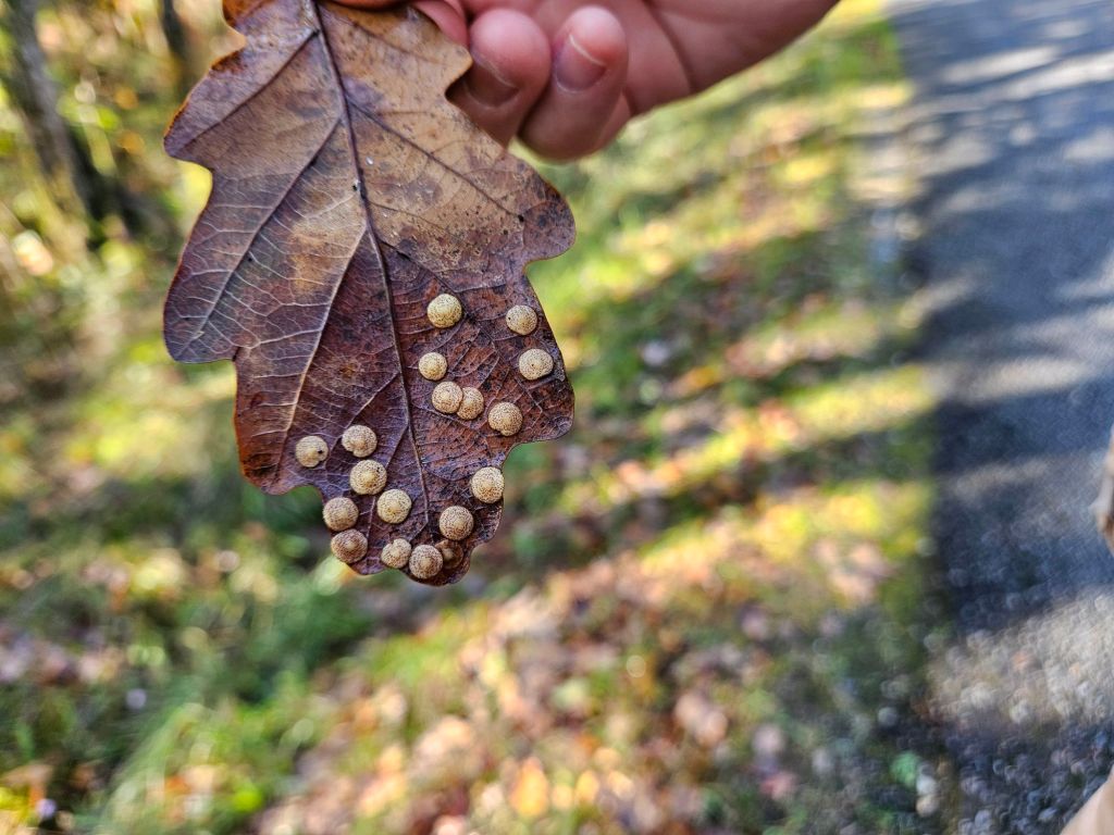 Strange little circles on this leaf. Egg sacs, maybe?