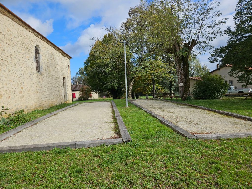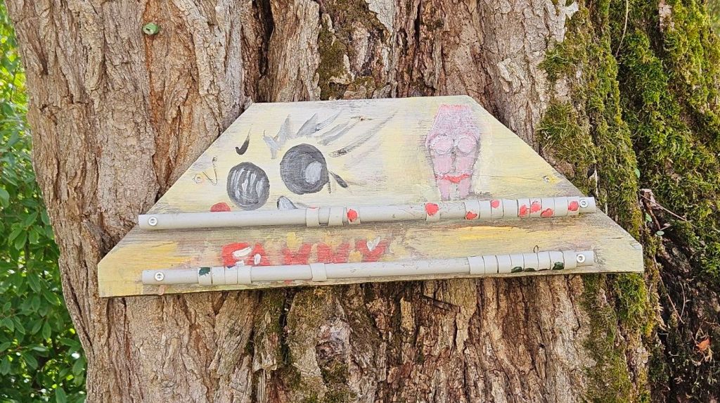 A rudimentary counter for petaingue nailed to a tree beside the pitches behind the church.