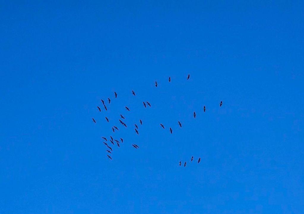 Flock of noisy cranes.