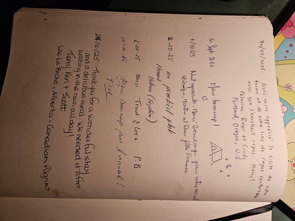 Camino magic! It turns out that I do know the Cindy in the guest book! Cindy was the first person Ken and I had met on the Camino Frances in 2019. I knew she had done the Voie de Vezelay last year but didn’t know she and her husband were here again. What a small world!